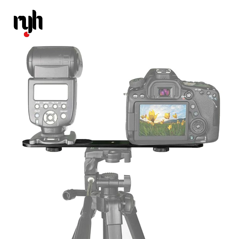 Особенности: Основной корпус изготовлен из металлических материалов, прикреплен нескользящей резиновой прокладкой.Разработан с резьбовым отверстием 1/4 дюйма и поставляется с 2 винтами-адаптерами 1/4 дюйма.Может поддерживать 2 камеры или вспышки (требуется Крепление-адаптер для горячего башмака) одновременно.100% новый товар высокого качества.