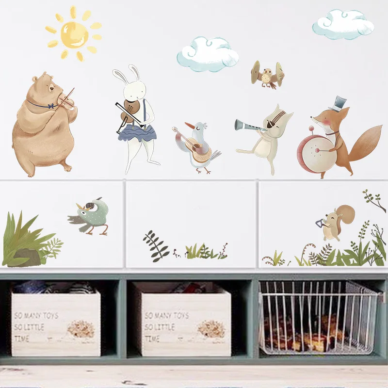 Настенные стикеры в скандинавском стиле с изображением животных, музыкальной группы, настенные наклейки для детской комнаты, настенные наклейки, домашний декор из ПВХ