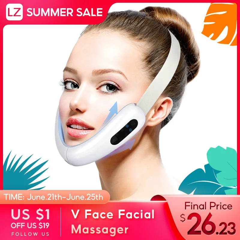 Радиочастотный микротоковый V-образный массажер для лица для лица, терапия горячим компрессом V-образная маска для похудения для лица V-образная форма двойной подбородок для подтяжки