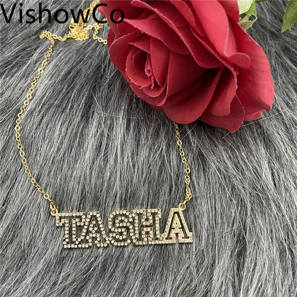 Ожерелье с именем VishowCo на заказ, цепочка из нержавеющей стали с...