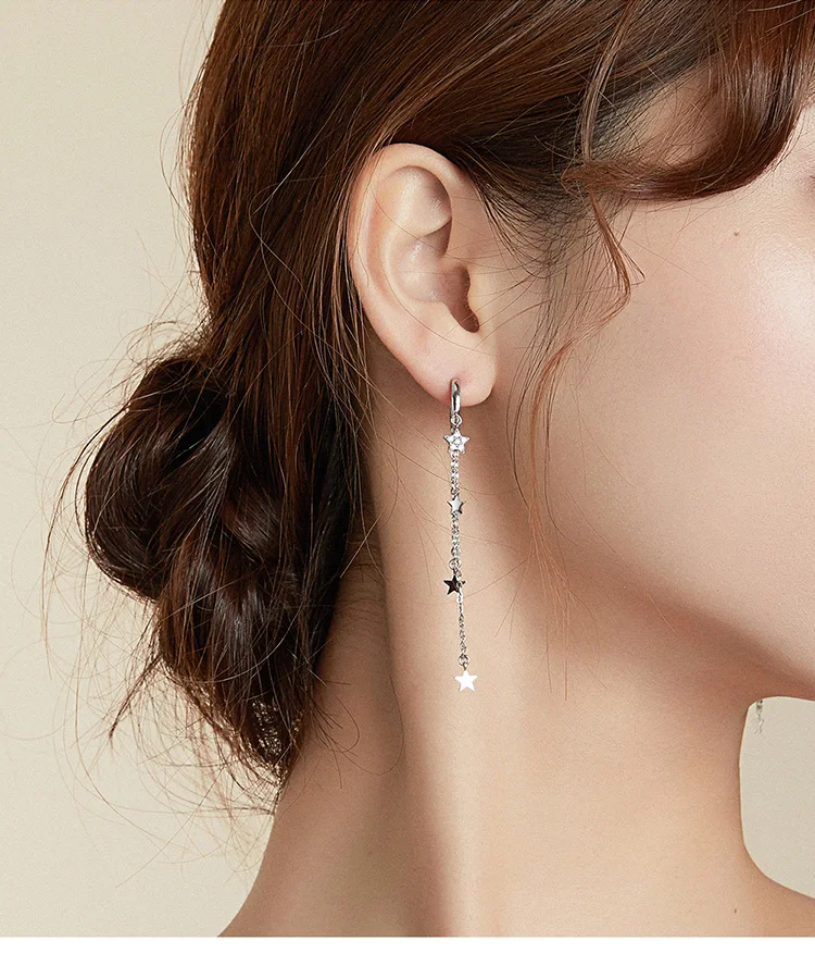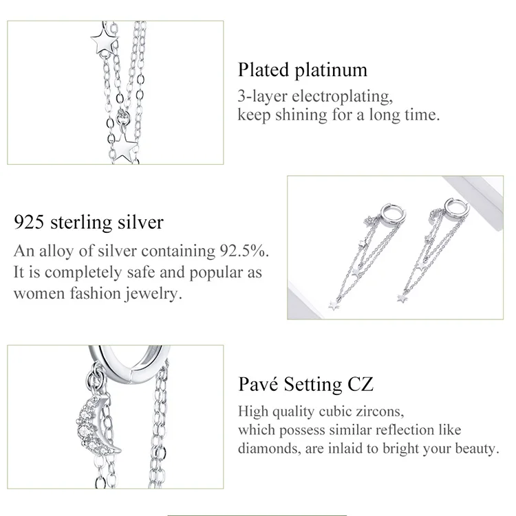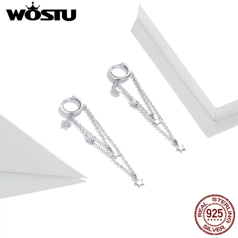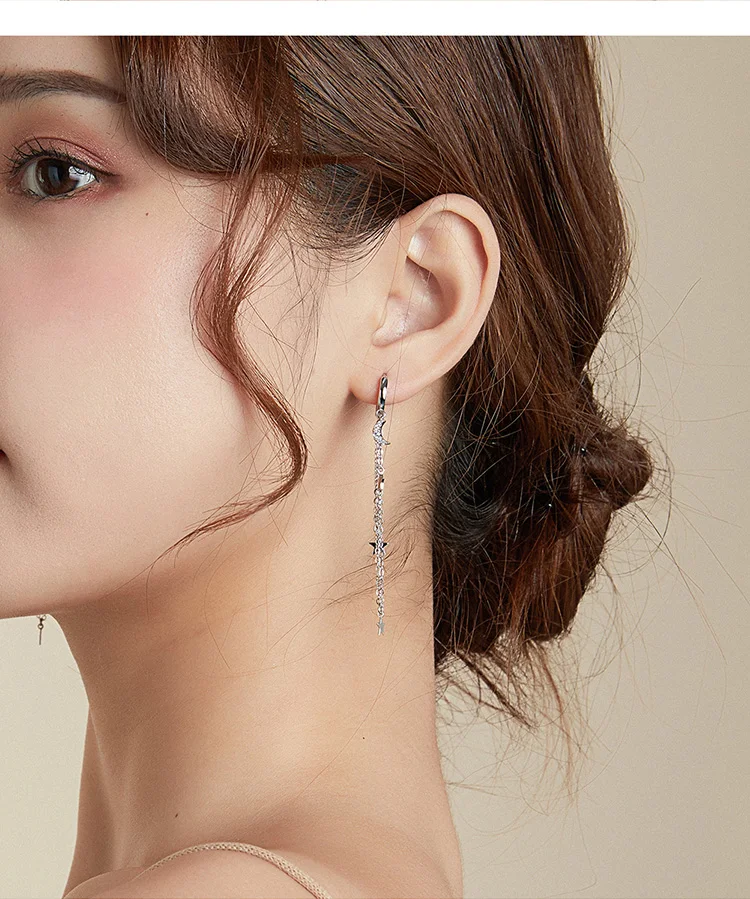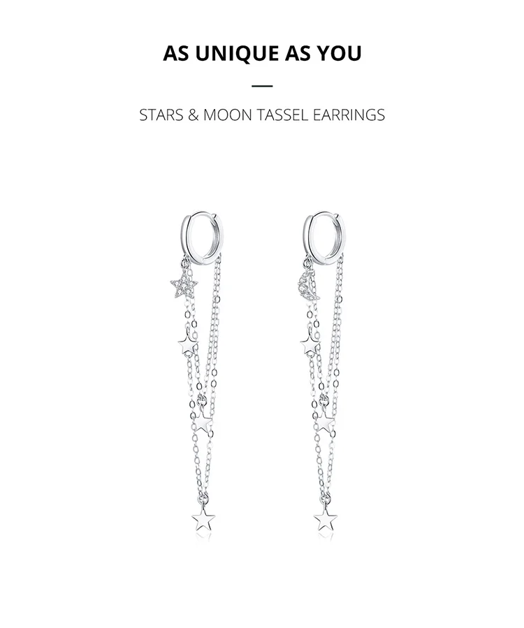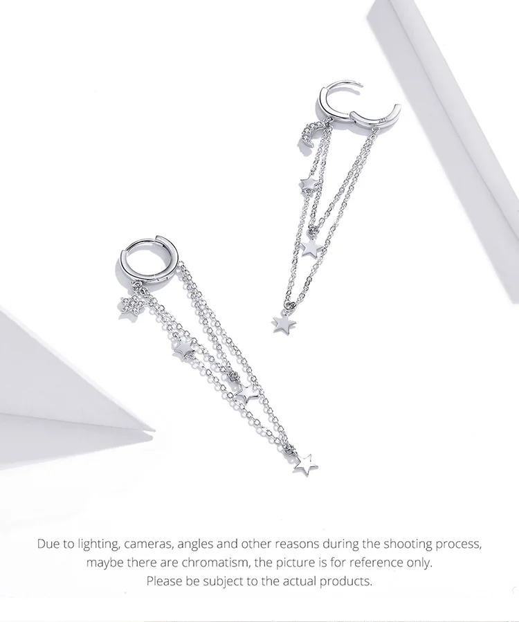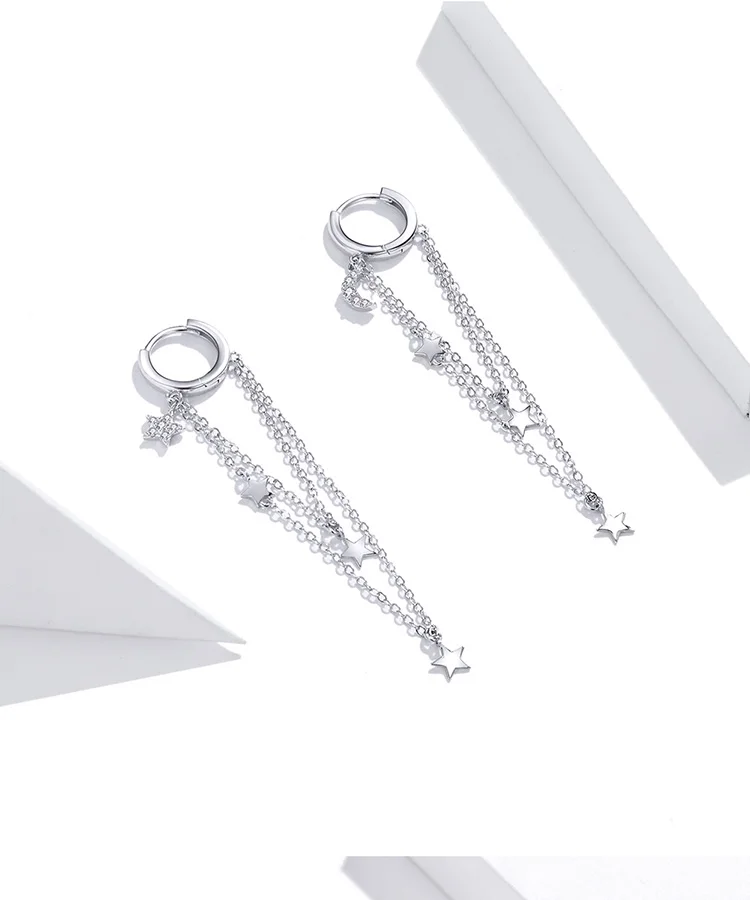 Женские серьги-подвески в виде звезд и Луны, из серебра 925 пробы