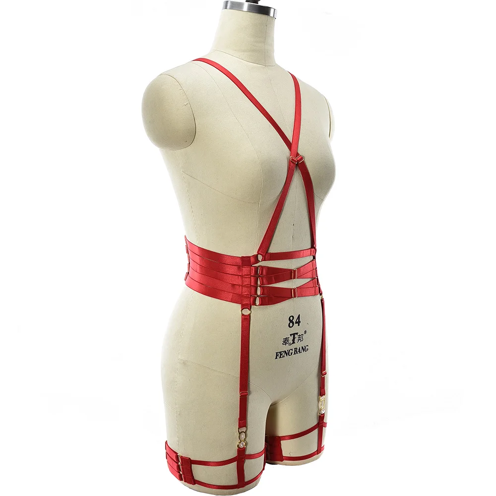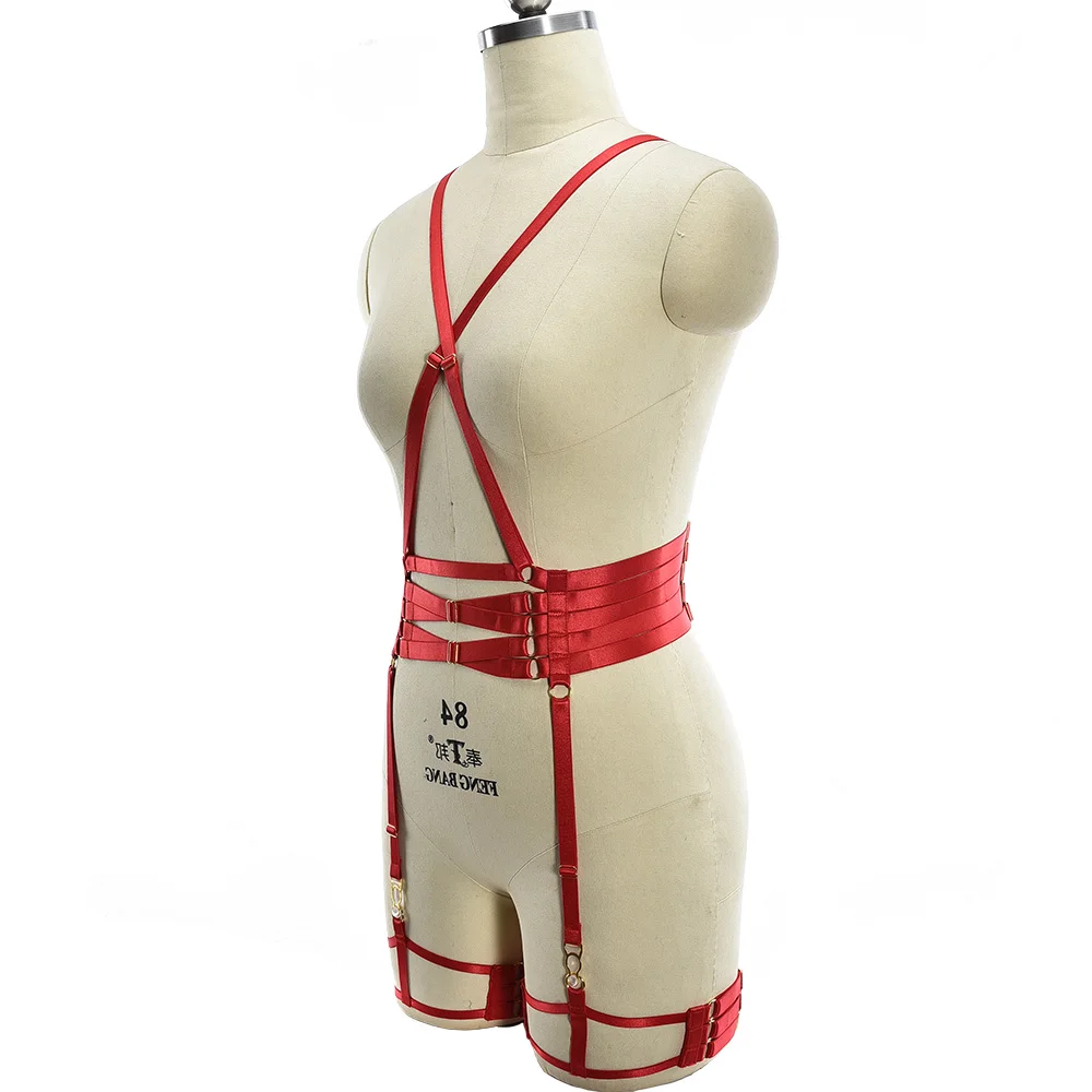Красный боди на бретельках, женский сексуальный бондажный комплект нижнего белья, готические чулки, подвязки, регулируемый бюстгальтер в клетку, эластичная портупея для тела