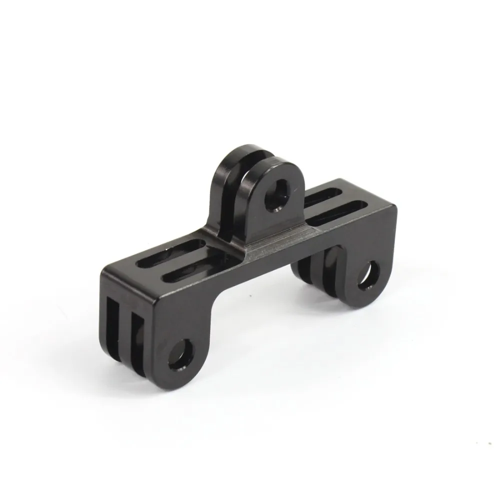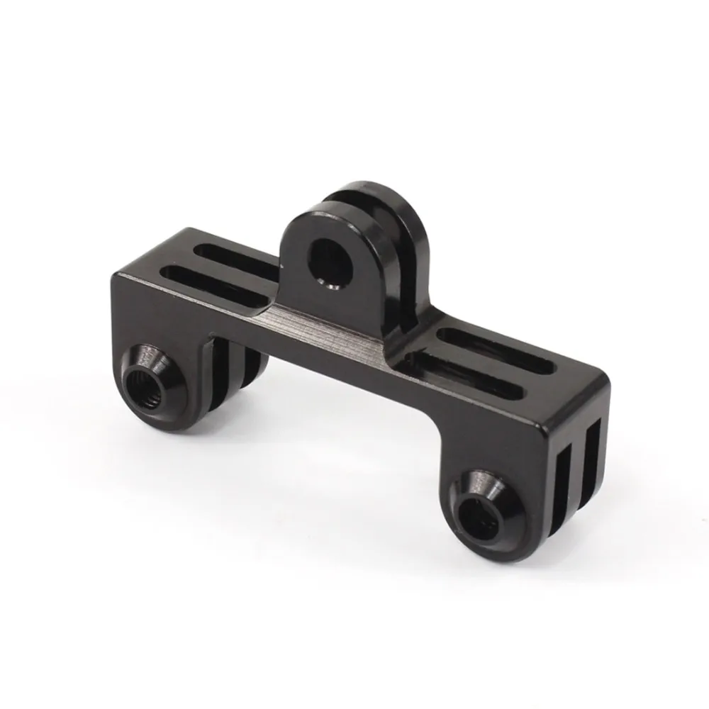 Кронштейн для спортивной камеры S1 Вы можете разместить две камеры одновременно, одну сзади или одну спереди, чтобы сохранить место. Материал-алюминиевый сплав, Вес 20 грамм Размер 17*36*59 мм Цвет: пескоструйная обработка черный (цвет может быть настроен) Товар включает в себя: Двойной кронштейн камеры с винтами x1