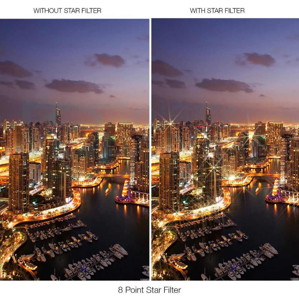 Звездные Фильтры используются для преобразования яркости солнца, мигания светильник на воде, отражения и т. Д.