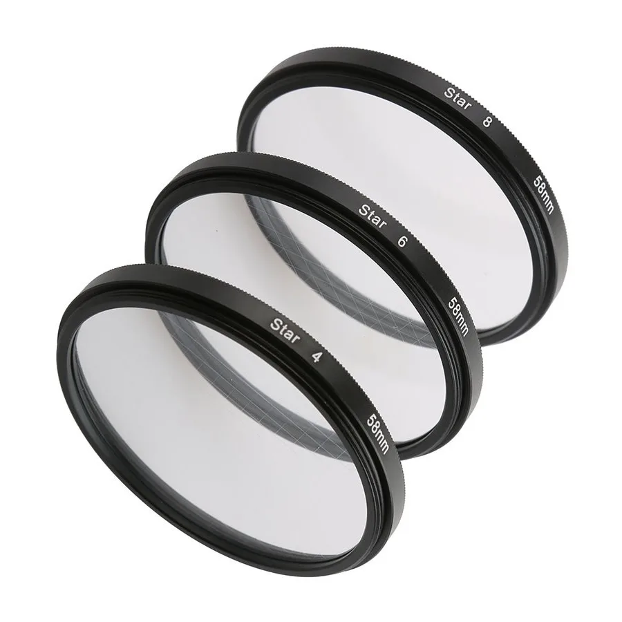 3 в 1 комплект 4 6 8 точечный Звездный фильтр для объектива цифровой камеры создает Точечный светильник, например, «Звезды», вытянутый наружу из центрального источника светильник. Это может сделать освещение внутри сцены более блестящим, гламурным внешним видом