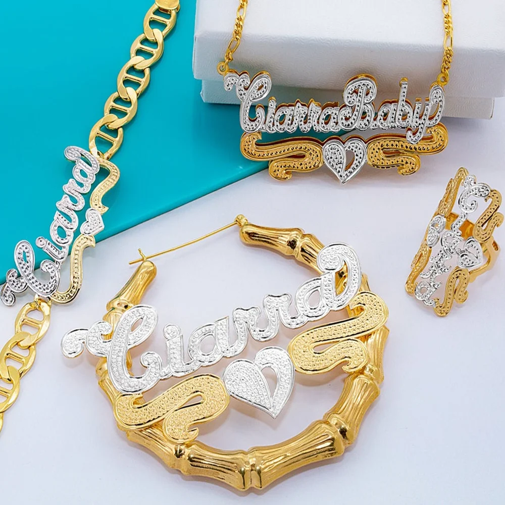 Набор бижутерии на заказ с 3D именной табличкой, модные серьги, име...