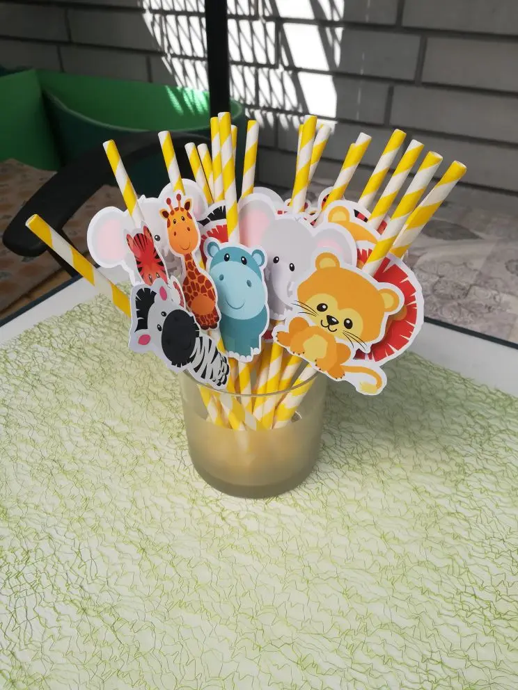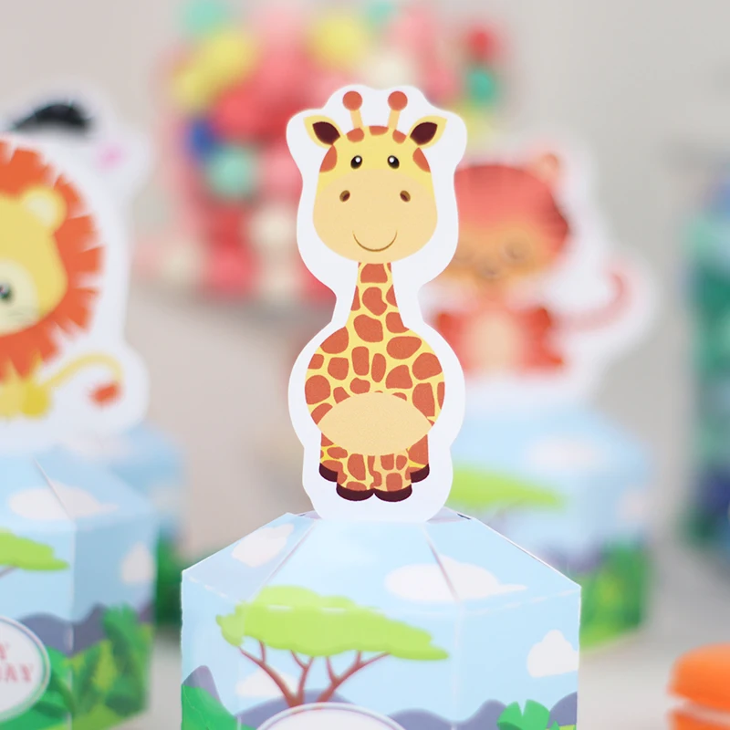 Подарочная коробка с животными сафари из джунглей, мешочки для конфет, упаковка для печенья, товары для детского дня рождения, топпер для торта, соломинки, бумажные чашки, Декор