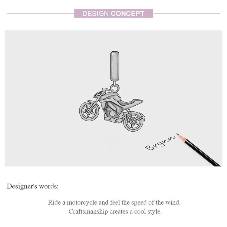 Подвеска-Шарм мотоцикл из серебра 100% пробы для браслета
