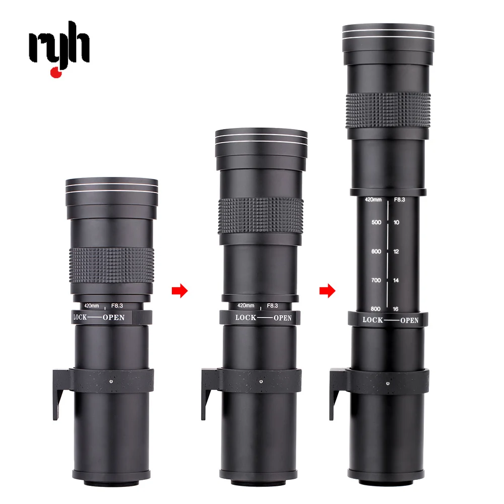 Супер телеобъектив RYH 420-800 мм F8,3-16 ручной зум-объектив для камеры Canon Nikon Sony Pentax DSLR