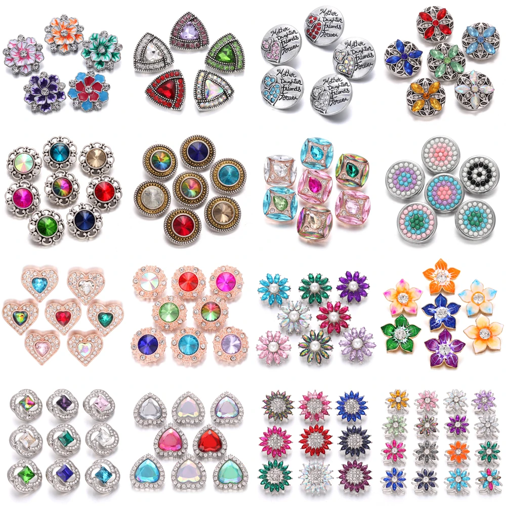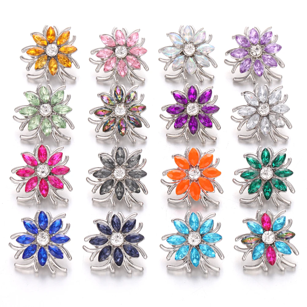 6 шт.лот оснастки ювелирные изделия 18 мм оснастки кнопки горный хрусталь Металлический Цветок Любовь взаимозаменяемые 18 мм защелки подходят DIY кнопки браслет