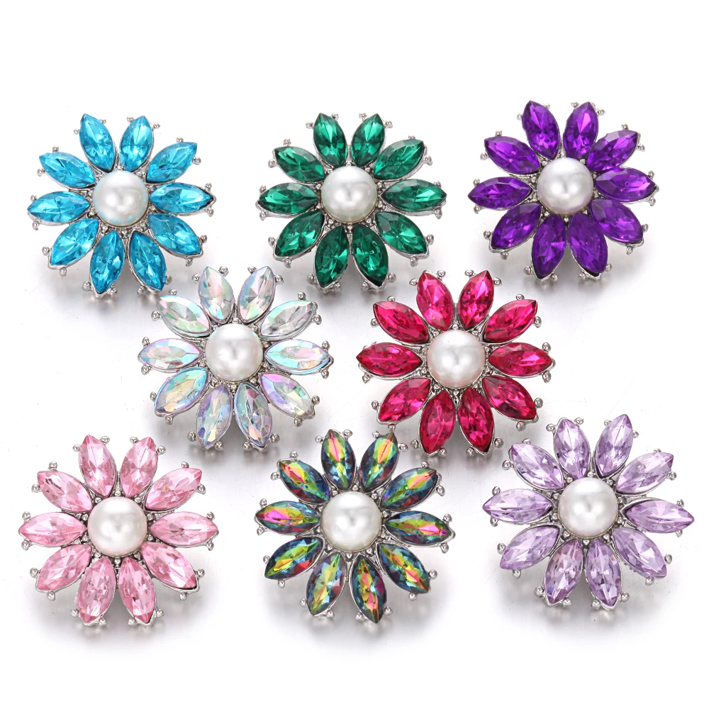 6 шт./лот оснастки ювелирные изделия 18 мм оснастки кнопки горный хрусталь Металлический Цветок Любовь взаимозаменяемые защелки подходят кнопки Браслет Подвески Ювелирные изделия
