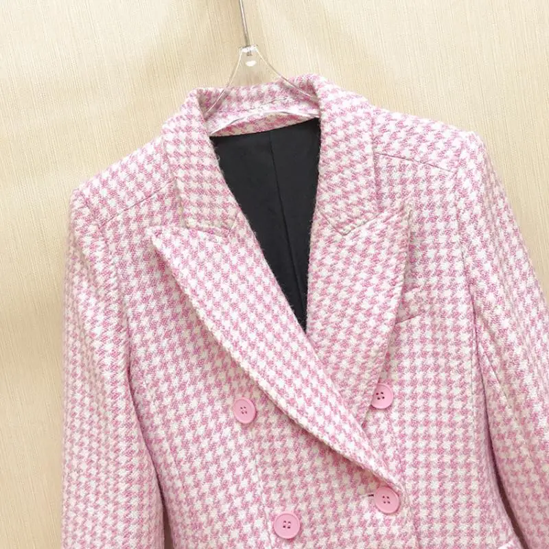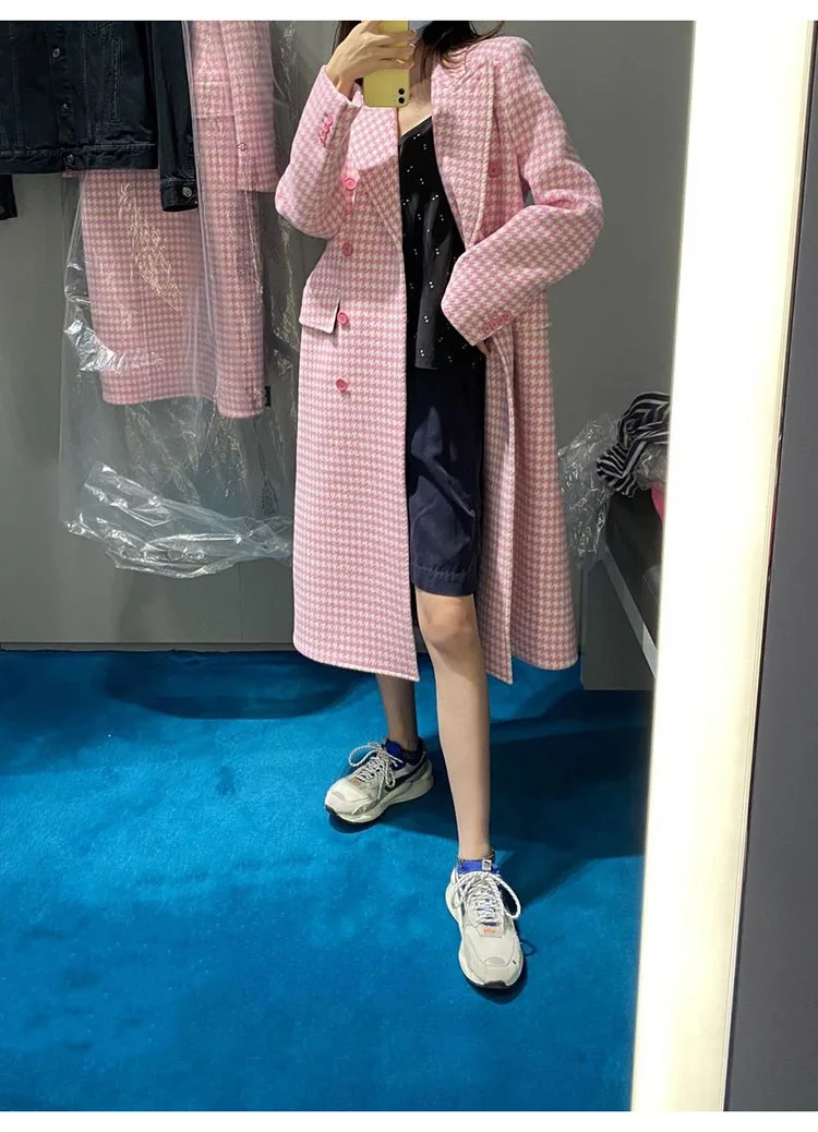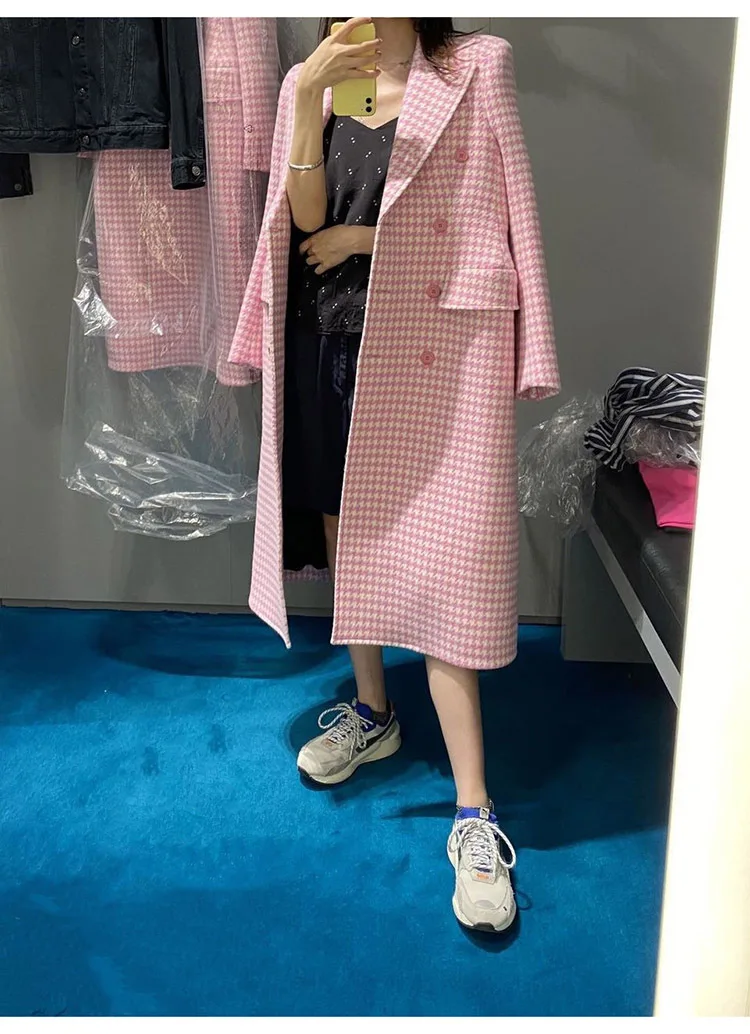 Женское длинное шерстяное пальто, элегантное розовое пальто в Корейском стиле из смешанной шерсти со стразами, винтажное минималистичное пальто верблюжьей расцветки, верхняя одежда для зимы