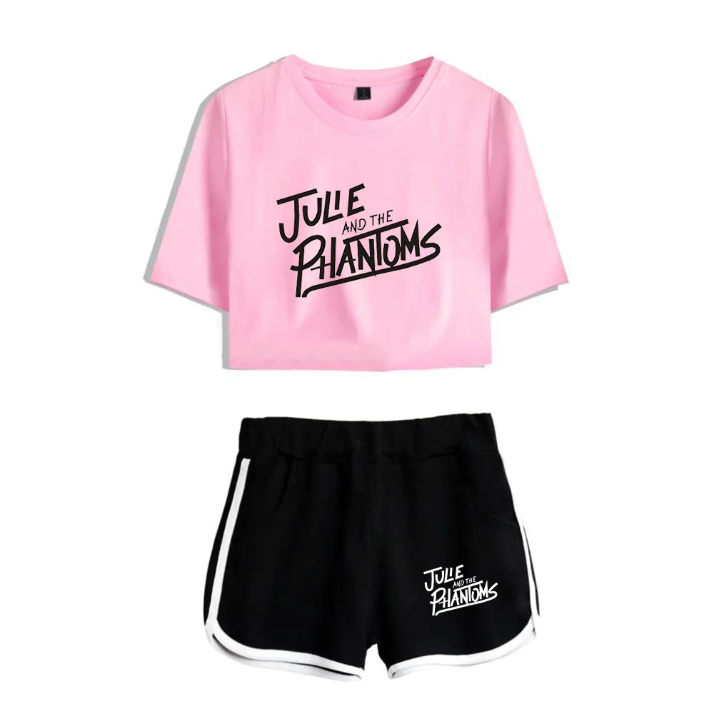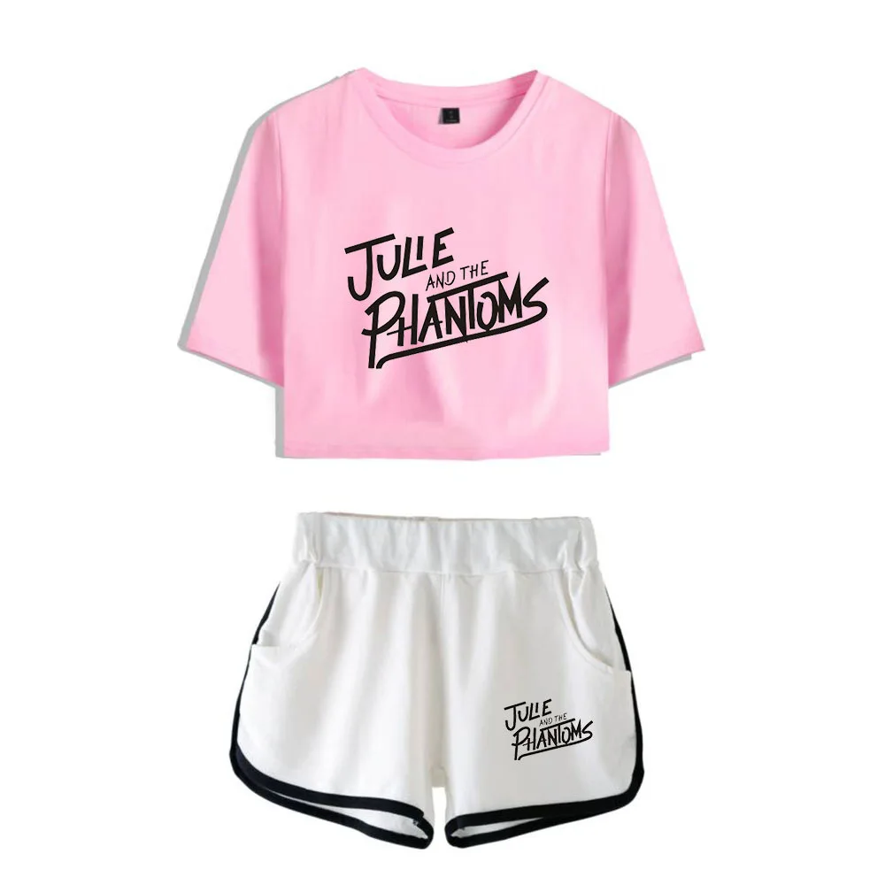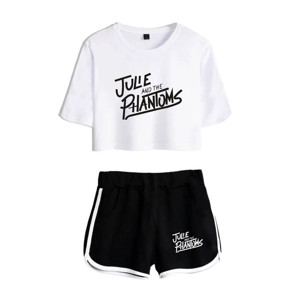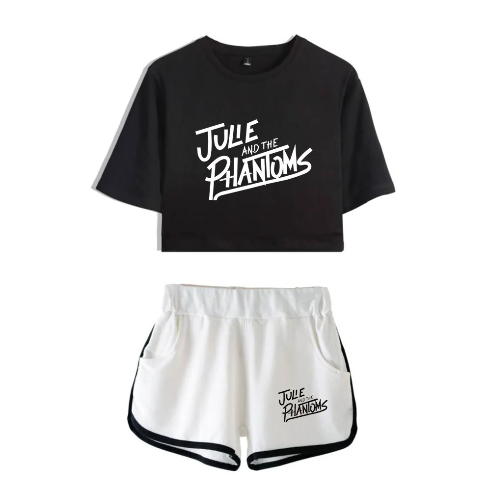 Летний спортивный костюм Julie and The Phantoms, Женский комплект из 2 предметов, укороченный топ и шорты Sunset Curve, комплект из двух предметов, повседневный женский спортивный костюм
