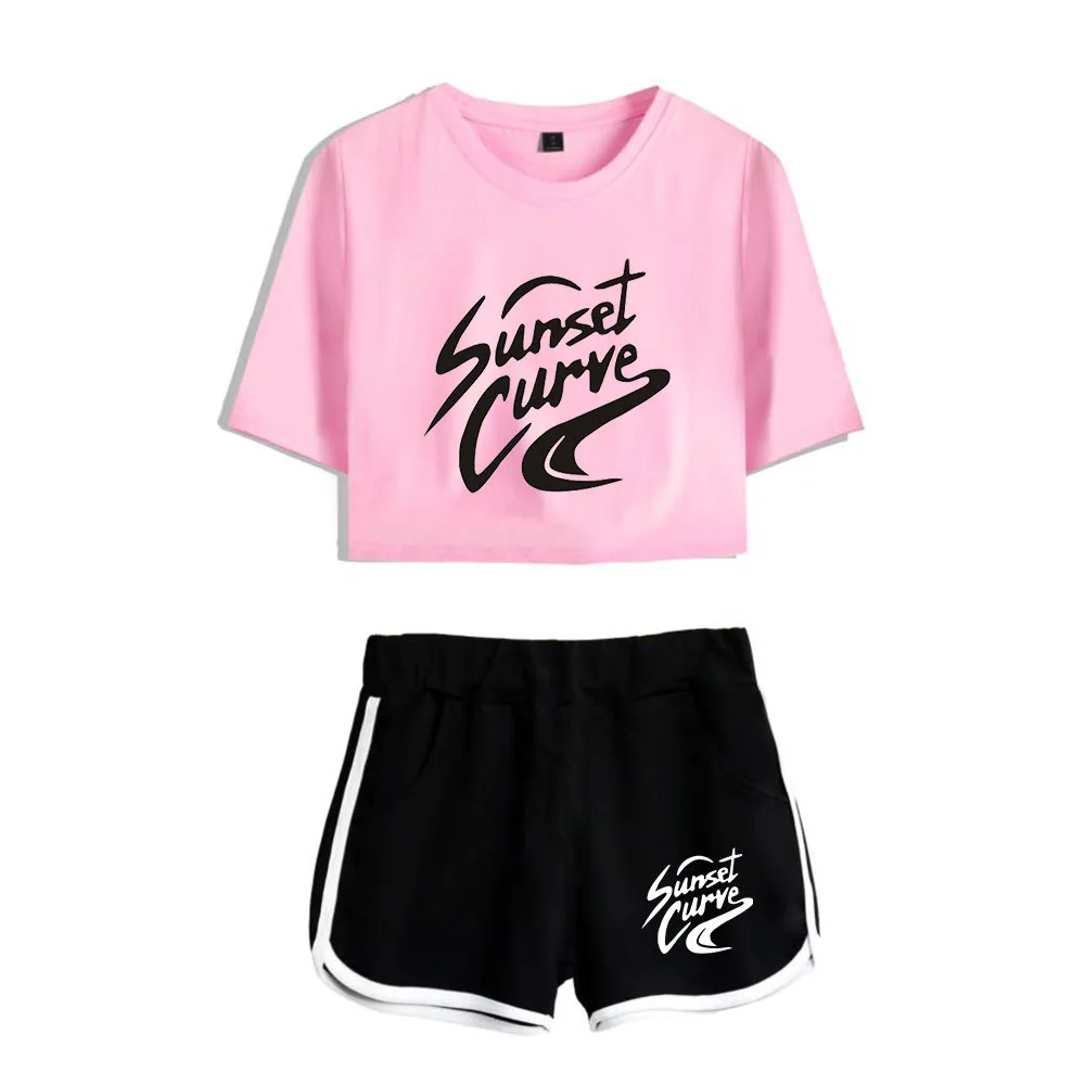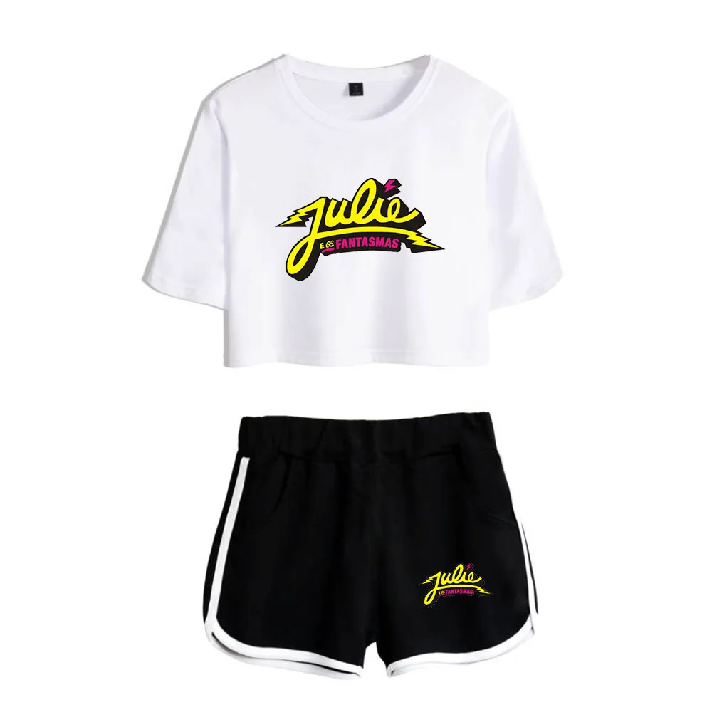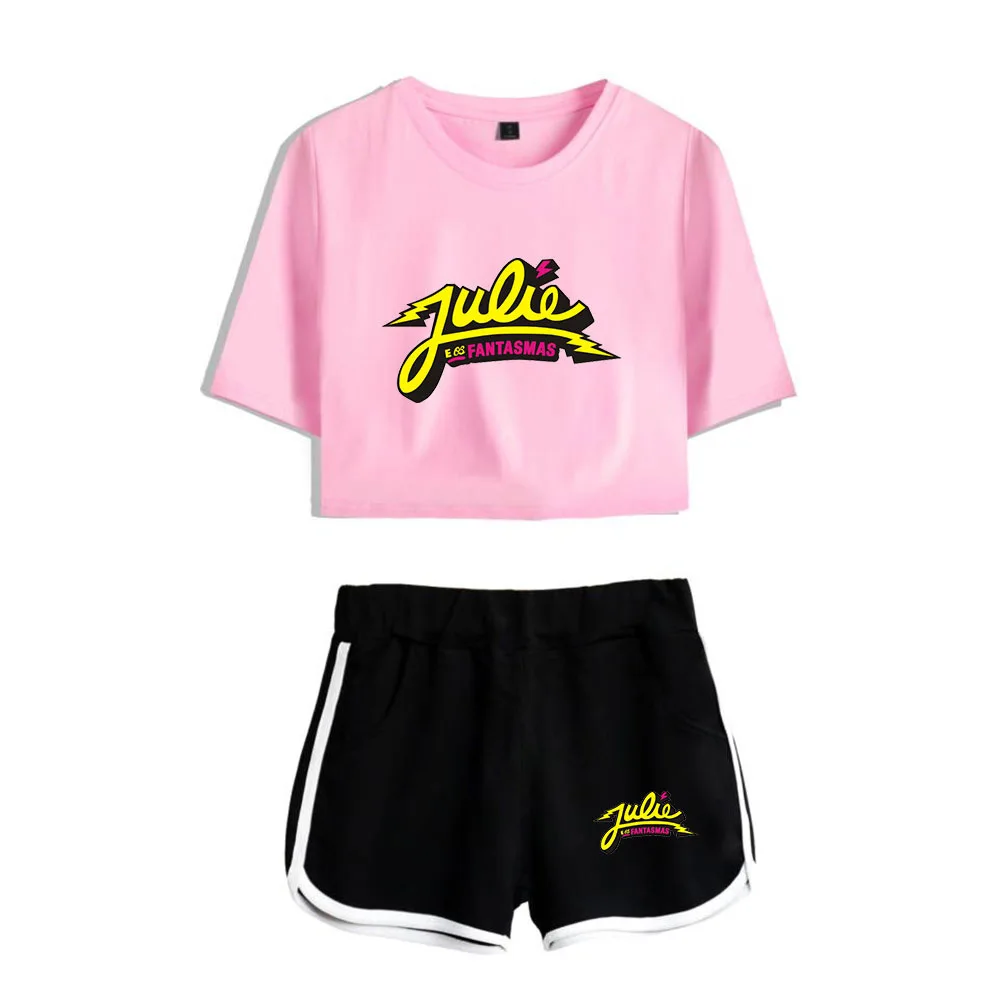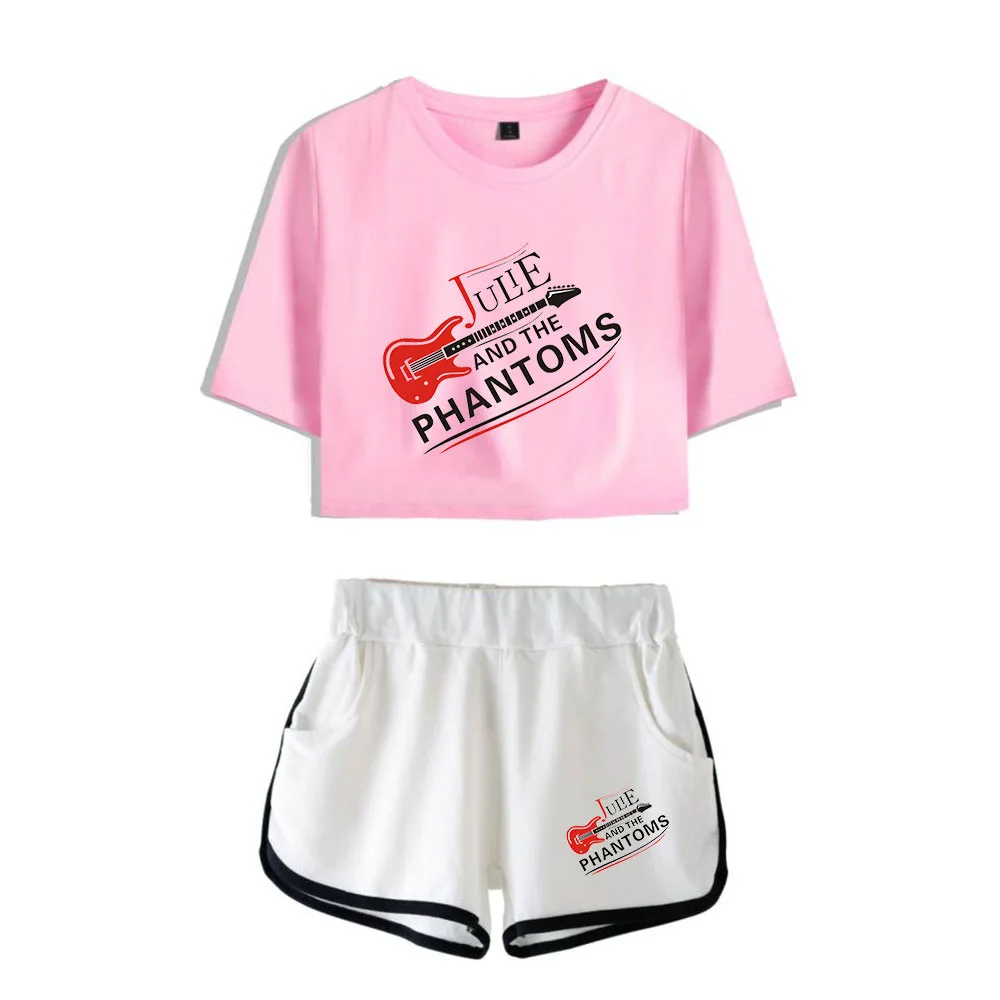 Летний спортивный костюм Julie and The Phantoms, Женский комплект из 2 предметов, укороченный топ и шорты Sunset Curve, комплект из двух предметов, повседневный женский спортивный костюм