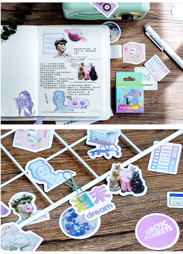 Симпатичные этикетки Vaporwave милый дневник ручной работы, клейкие...