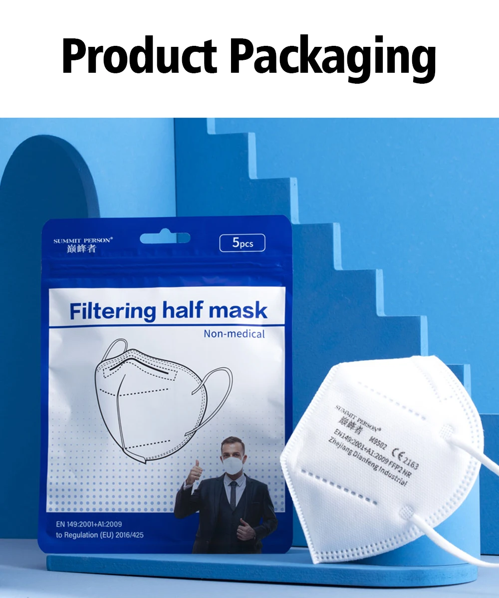 Этот продукт прошел Европейское профессиональное испытательное агентство (уведомление номер тела: NB2163) в соответствии со стандартом FFP2 EN149: 2001 + A1: 2009 респираторное защитное оборудование-антидисперсный фильтр полумаска-требования, тестирование, маркировка.