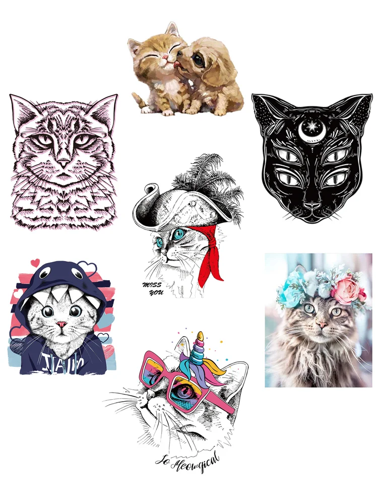 Термоклейкие нашивки для одежды, милые Коты, полоски для джинсов, самодельные Детские нашивки на одежду, виниловые нашивки с теплопередачей