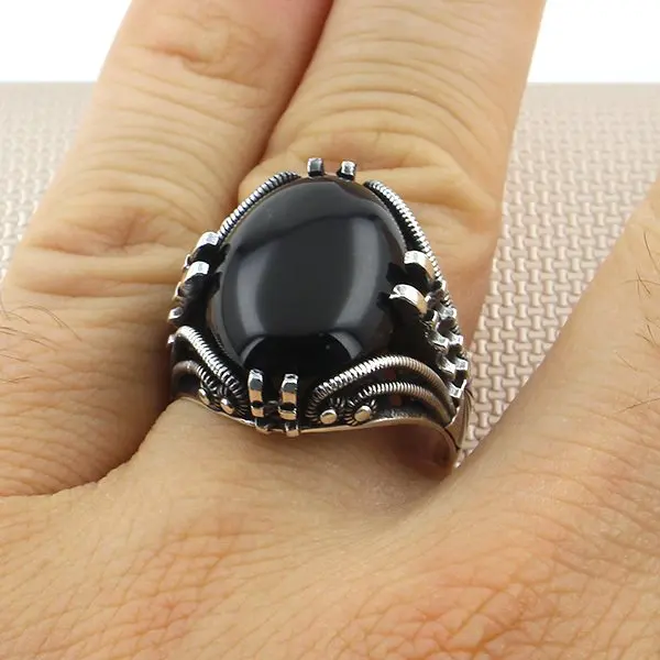 Современный тренд овальный камень "черный оникс" Серебряное кольцо Для мужчин серебряное кольцо Сделано в Турции сплошной 925 пробы серебро