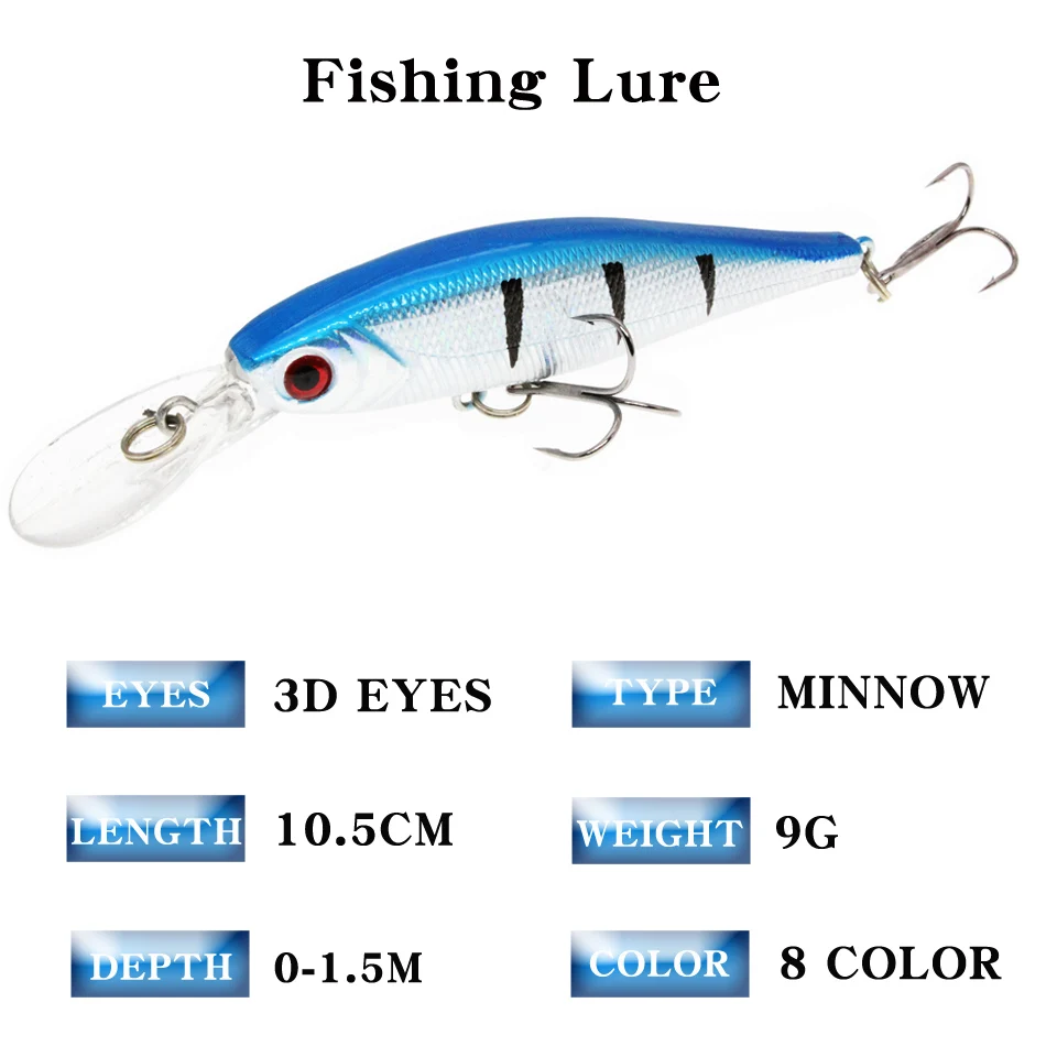 1 шт. Minnow приманки для ловли рыбы, твердая приманка 10,5 см, вес: 9 гр воблер бас Щука приманка Пластик искусственные приманки для рыболовные снасти, воблер