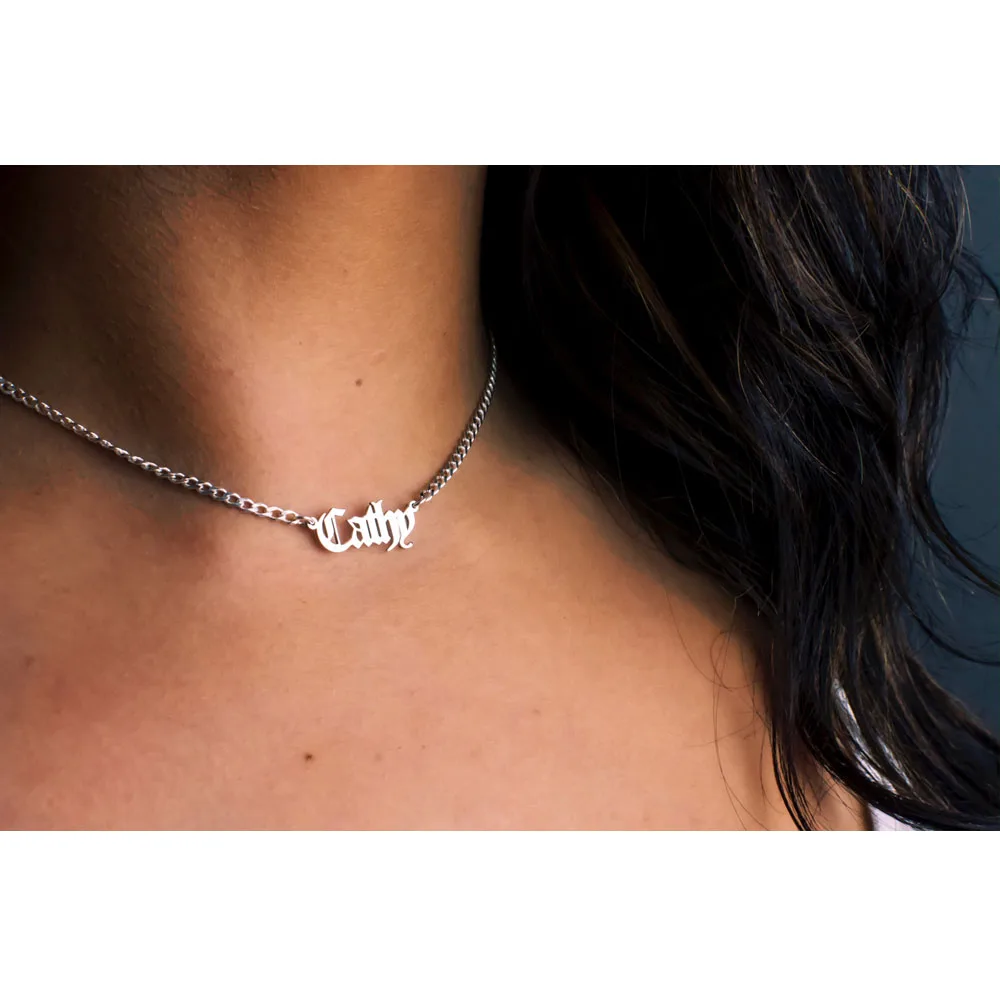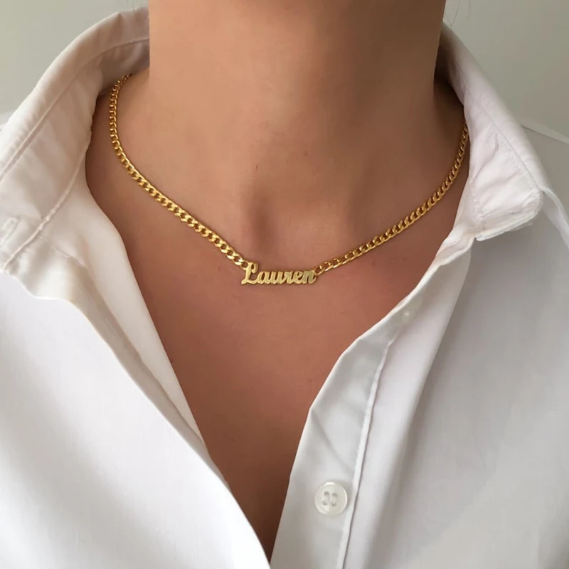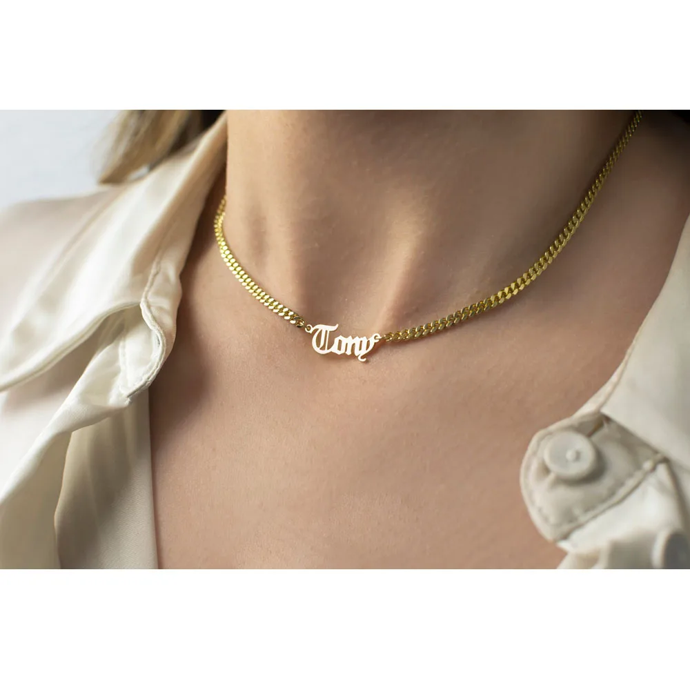 Ожерелье с именем VishowCo под заказ, ожерелье золотого цвета из нержавеющей стали, персонализированная старинная английская кубинская цепь, ожерелья с табличкой с именем для женщин, подарок