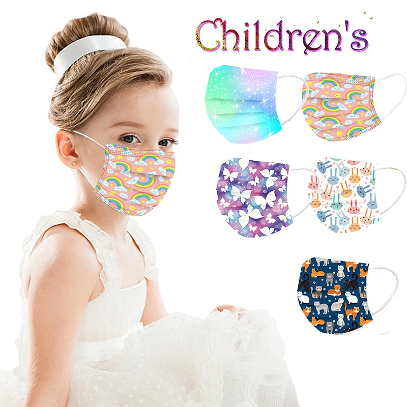 10 шт., детские одноразовые маски для лица с радужным принтом