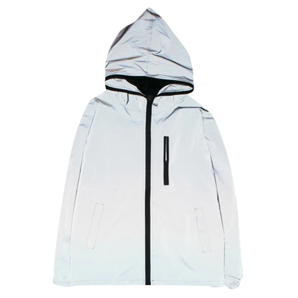 Светоотражающая куртка, новинка, ветровка в стиле Харадзюку для мужчин и женщин, уличная одежда с капюшоном, пальто на молнии, тонкая мужская куртка