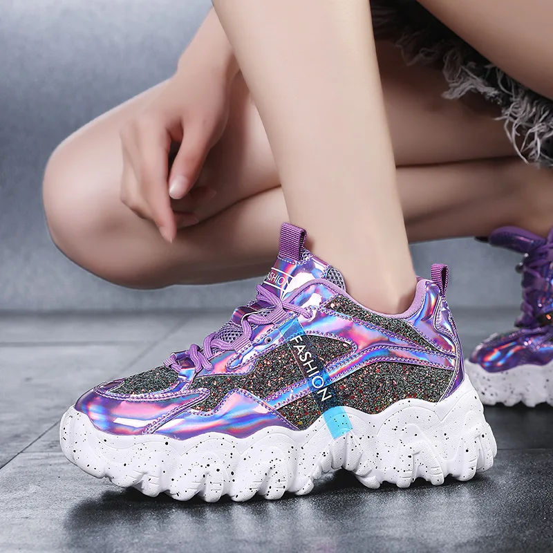 Женские кроссовки на массивной подошве, фиолетовые дышащие кроссовк...