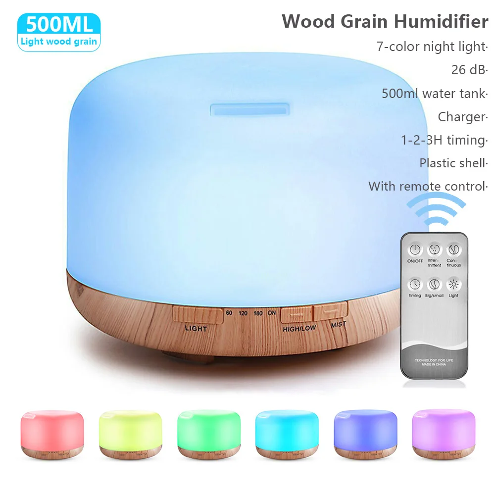 Электрический аромадиффузор, увлажнитель воздуха, диффузор эфирных масел, 500 мл, ультразвуковой пульт дистанционного управления, генератор холодного тумана, домашняя светодиодсветодиодный лампа