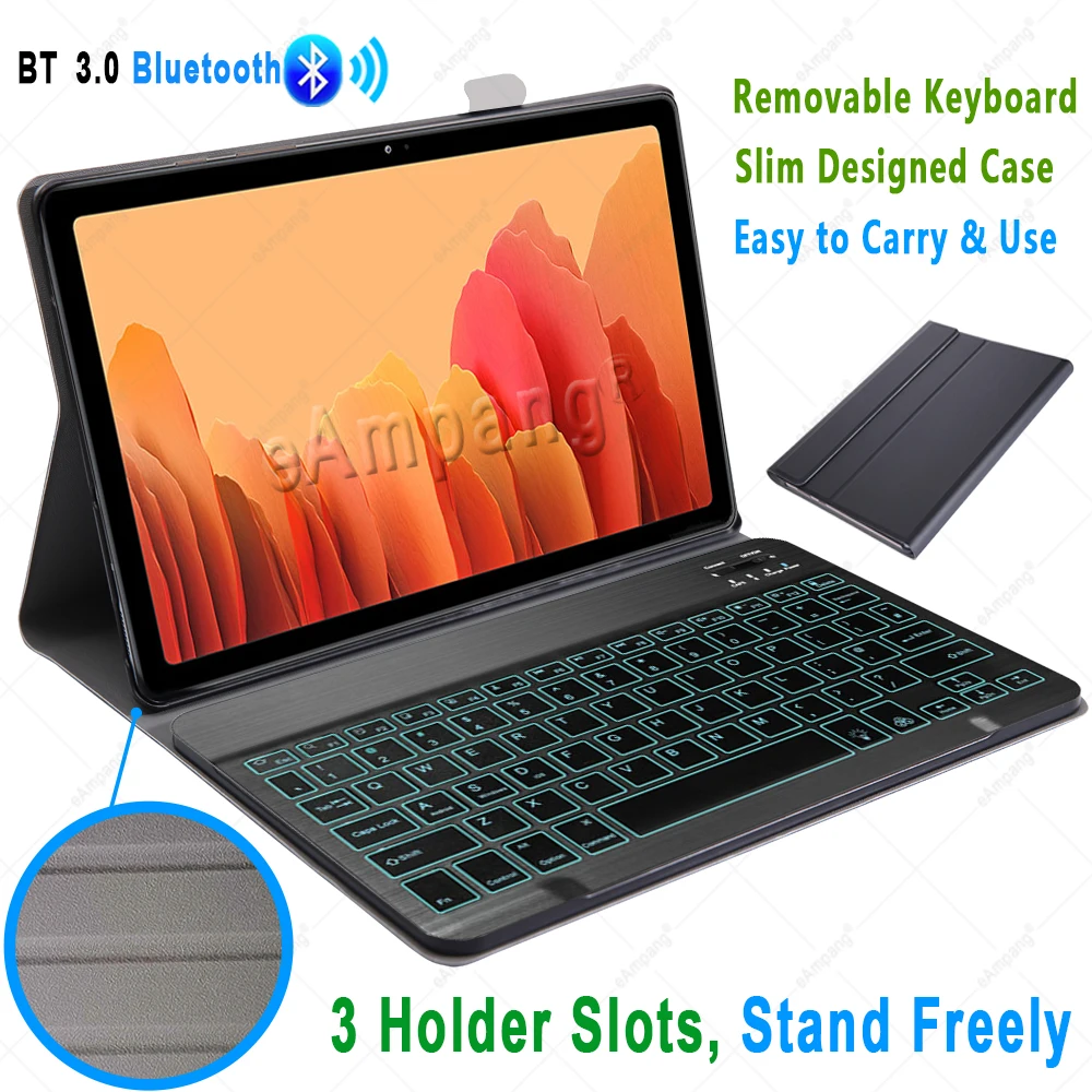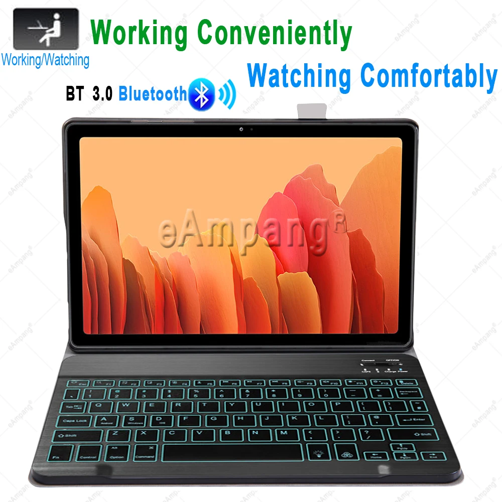 1: стандарт 3,0Совместимость с BluetoothРаствор2: эффективное расстояние 10 метров3: Время в режиме ожидания: 100 дней4: непрерывное рабочее время: 70 часов5: Время зарядки: 2-3 часа6: емкость литиевой батареи: 200mha7: срок службы литиевой батареи: 3 года8: срок службы кнопки: 500 миллионов раз9: дополнительный цвет: черный, темно-синий, розовое золото, золото,10: чехол для клавиатуры с подсветкой и мышьюБесплатные подарки:Стилус * 1 + Защитная пленка для экрана * 1 + Кабель Micro USB * 1Применимые модели:Для Samsung Galaxy TabA7 10,4 (2020) (SM-T500 (только Wi-Fi); SM-T505 (LTE)