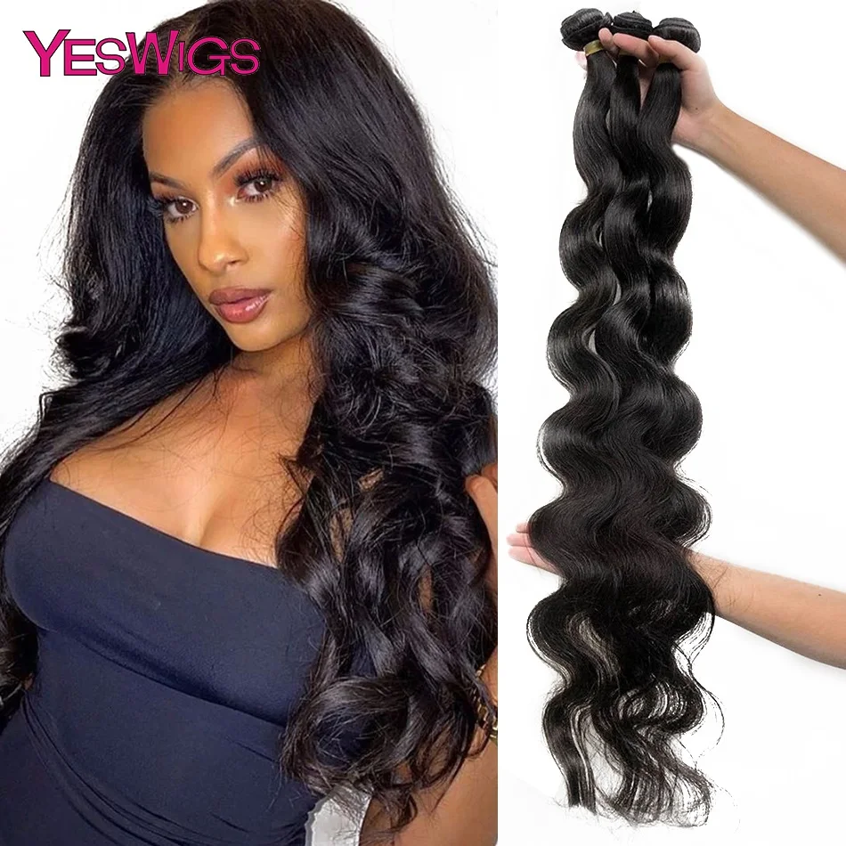 Пупряди Yeswigs с объемными волнами 32, 34 дюйма, 134 шт., малазийские человеческие волосы без повреждений, волнистые пучки из 100% человеческих волос пряди для наращивания волос