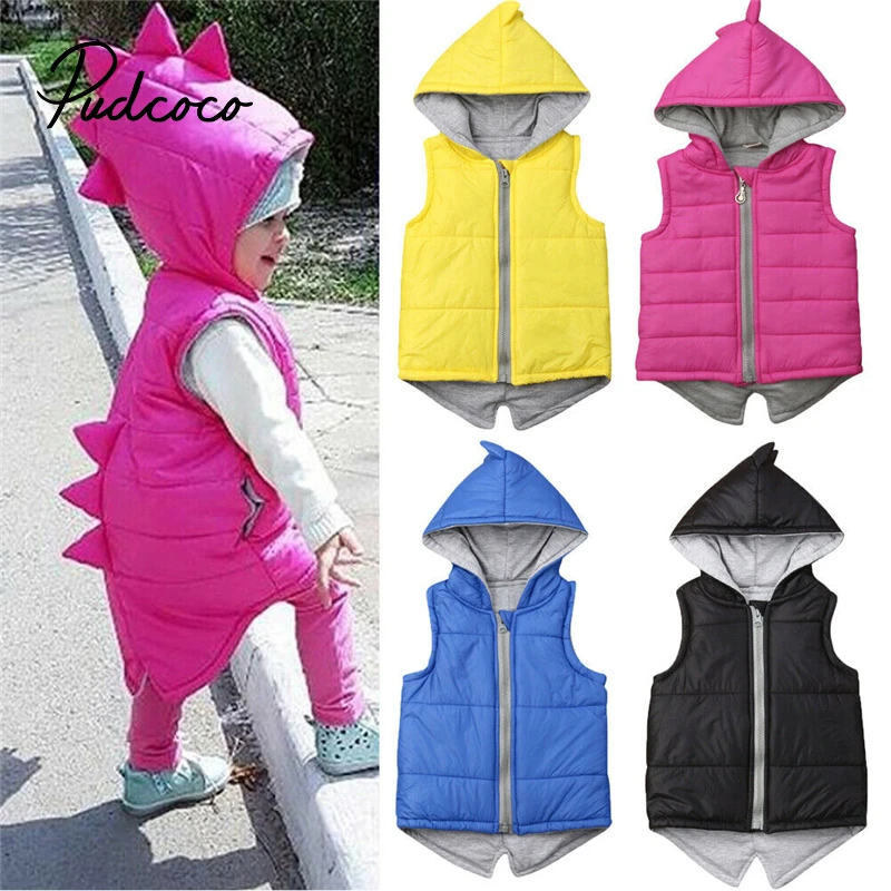 2019 зимние хлопковые жилеты для малышей, для маленьких детей, для мальчиков и девочек, жилетка с динозавром куртка на молнии с капюшоном для мальчиков, пальто, верхняя одежда теплая верхняя одежда толстовки От 6 месяцев до 5 лет