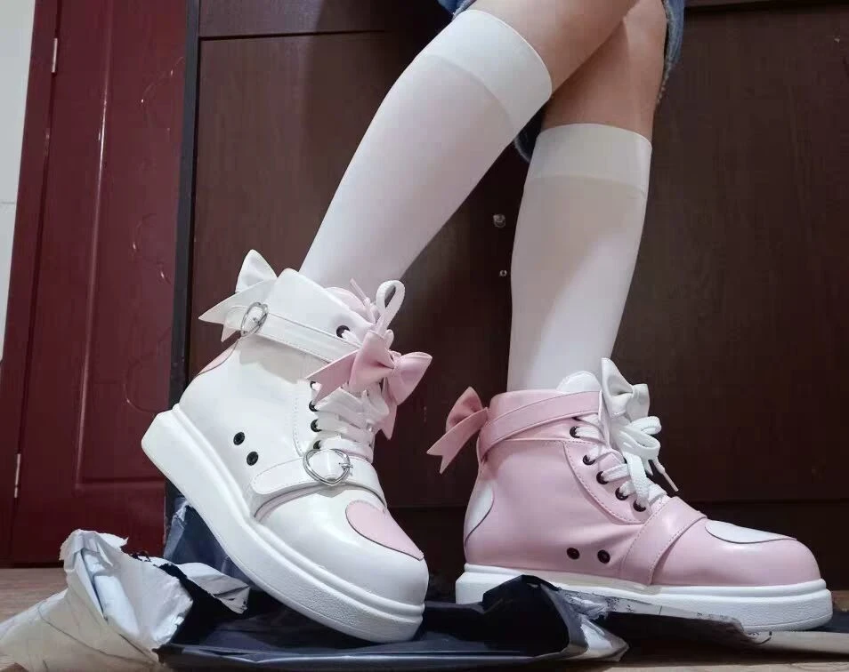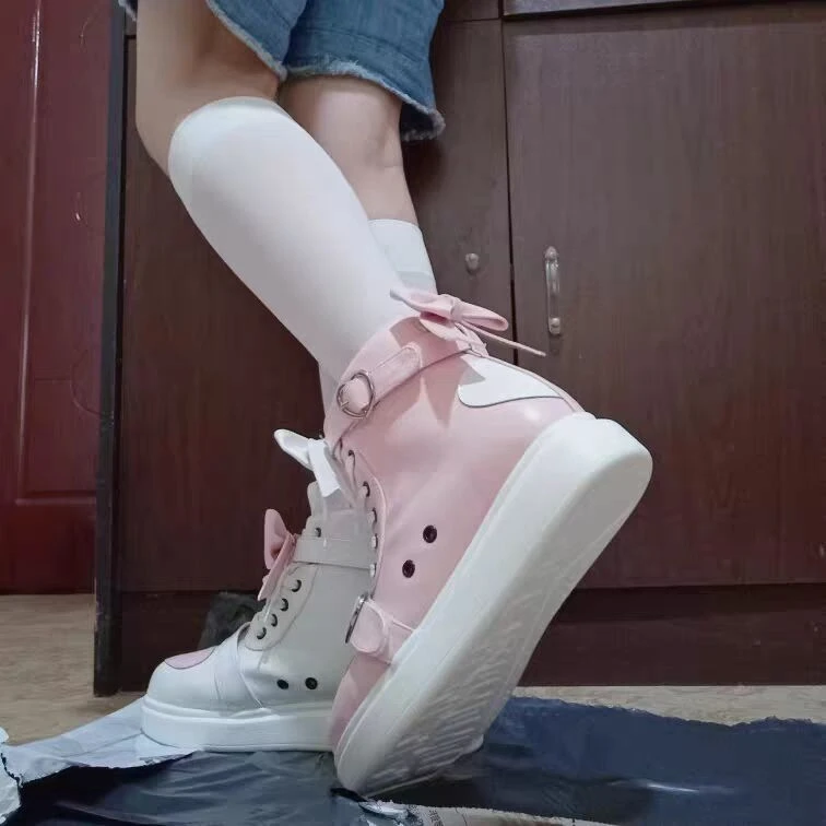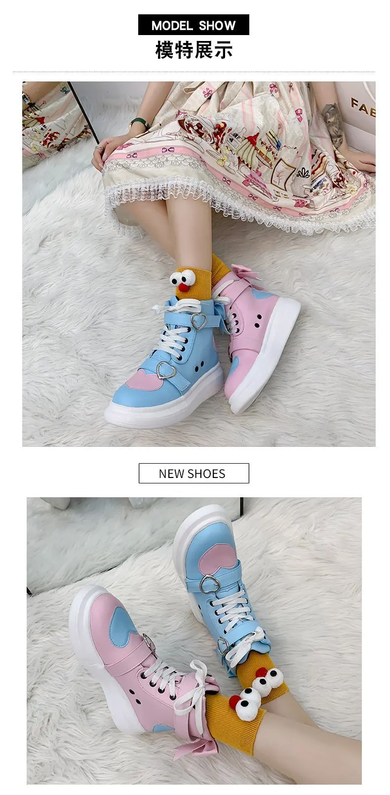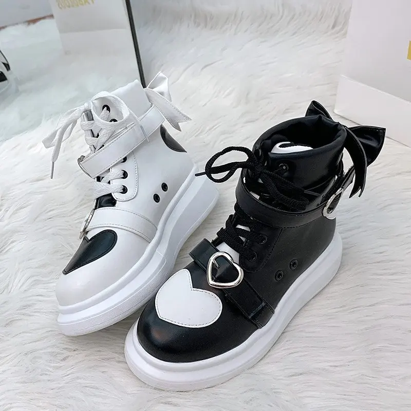 Туфли женские в Корейском стиле Харадзюку, с бантом и круглым носком