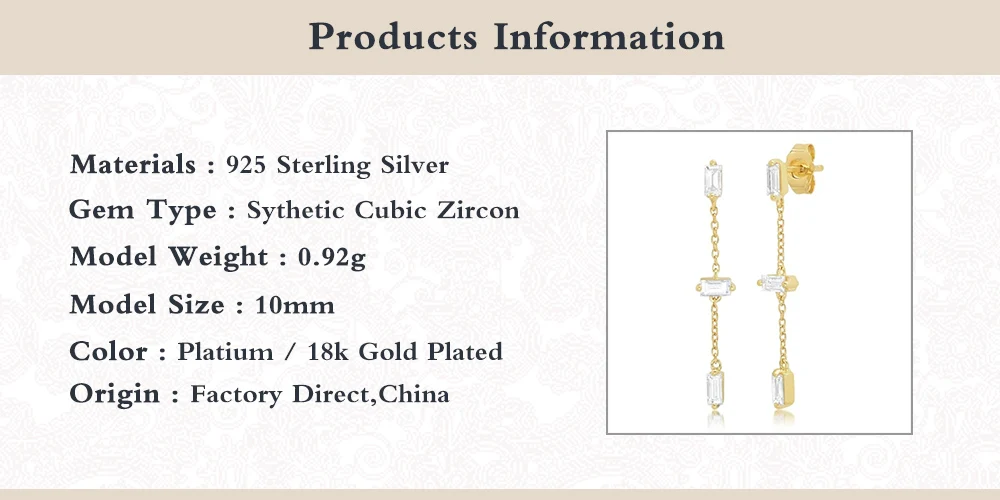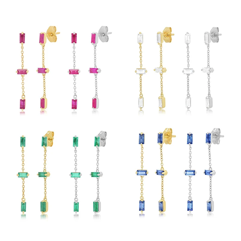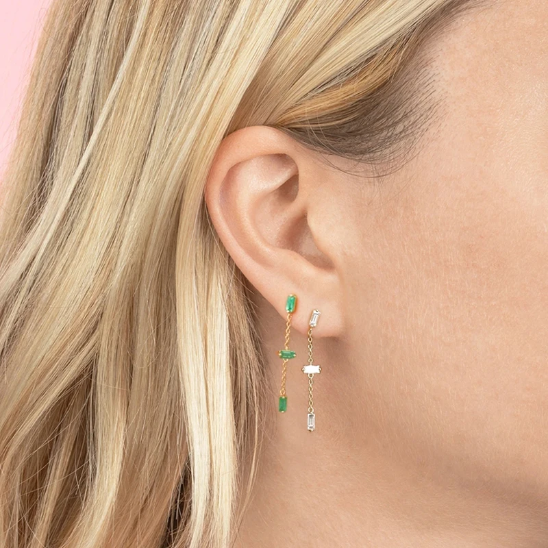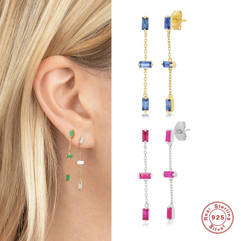 925 пробы серебряная подвеска с цирконием цепочка висячие серьги длинная линия кисточкой прямоугольник Циркон пирсинг серьги для женщин девушек