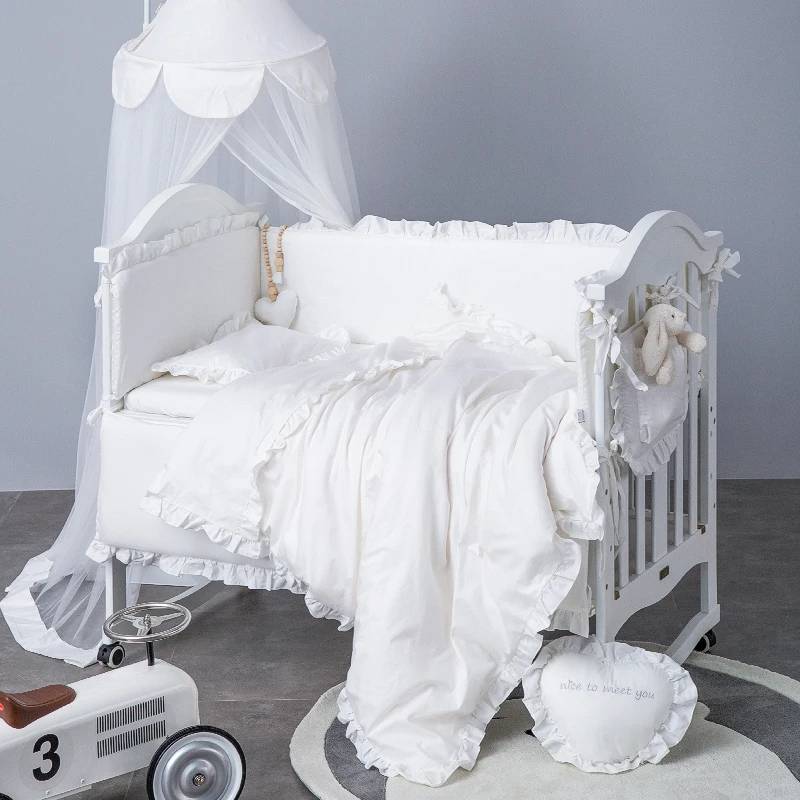 Комплект постельного белья для новорожденных, бамперы для постельных принадлежностей, одеяло, подушка, наматрасник