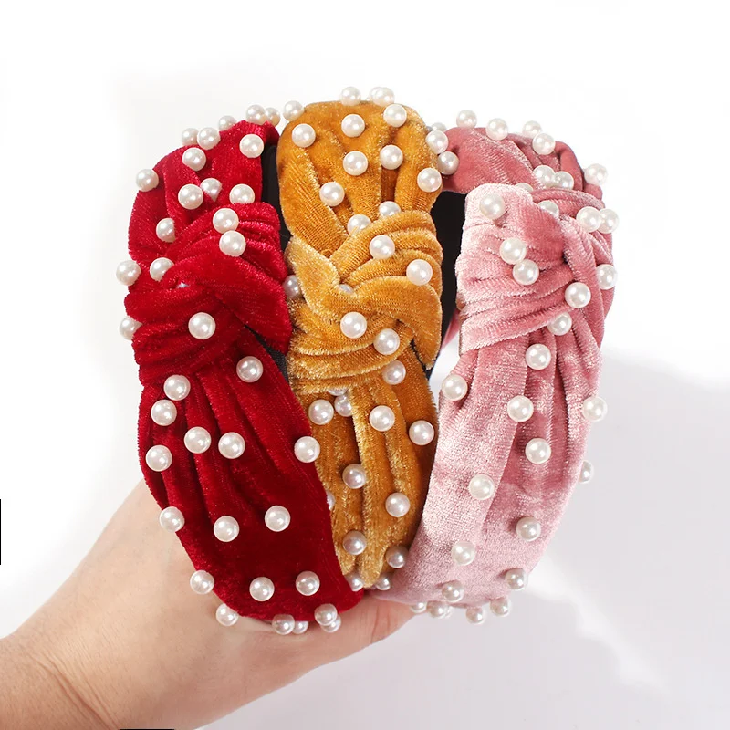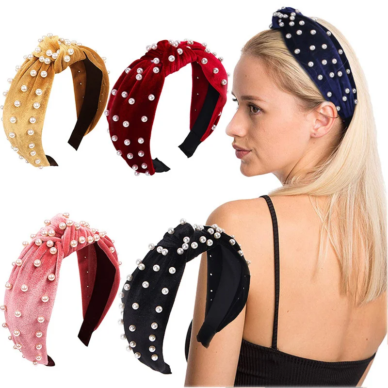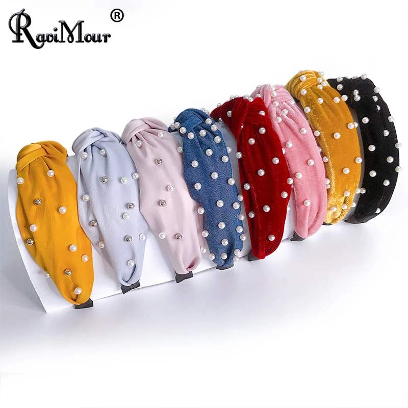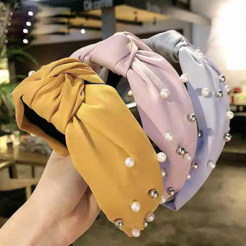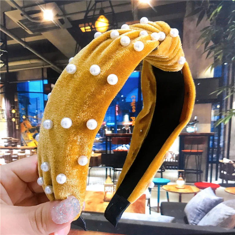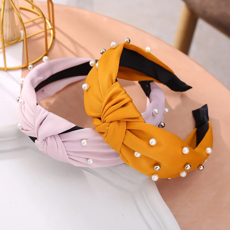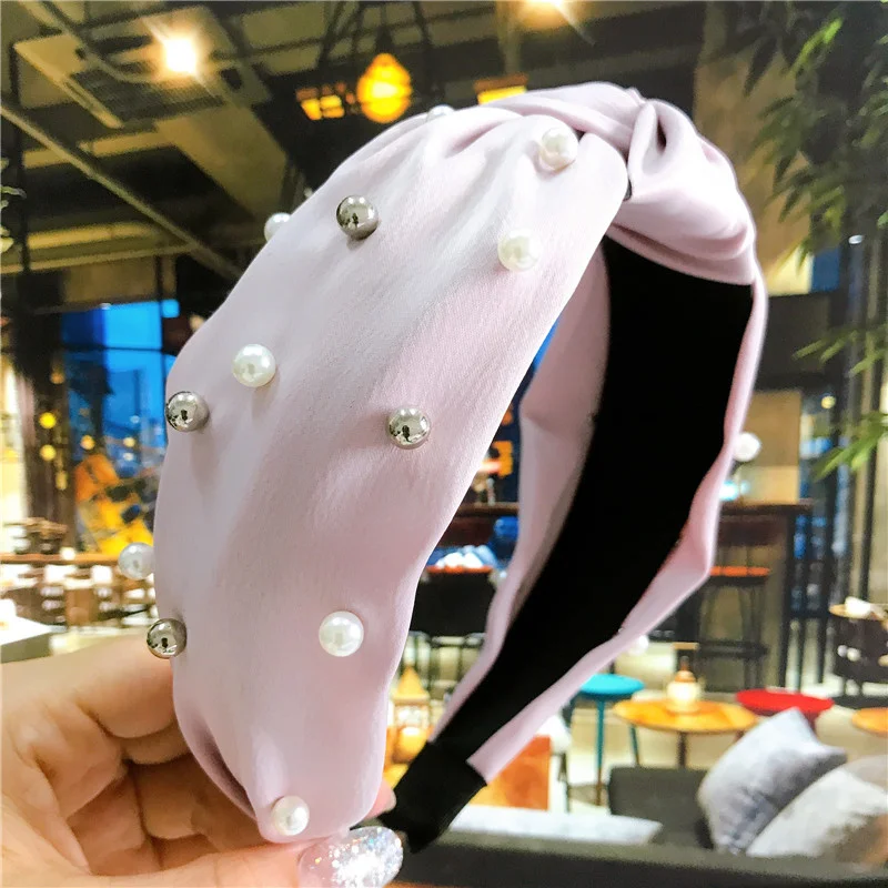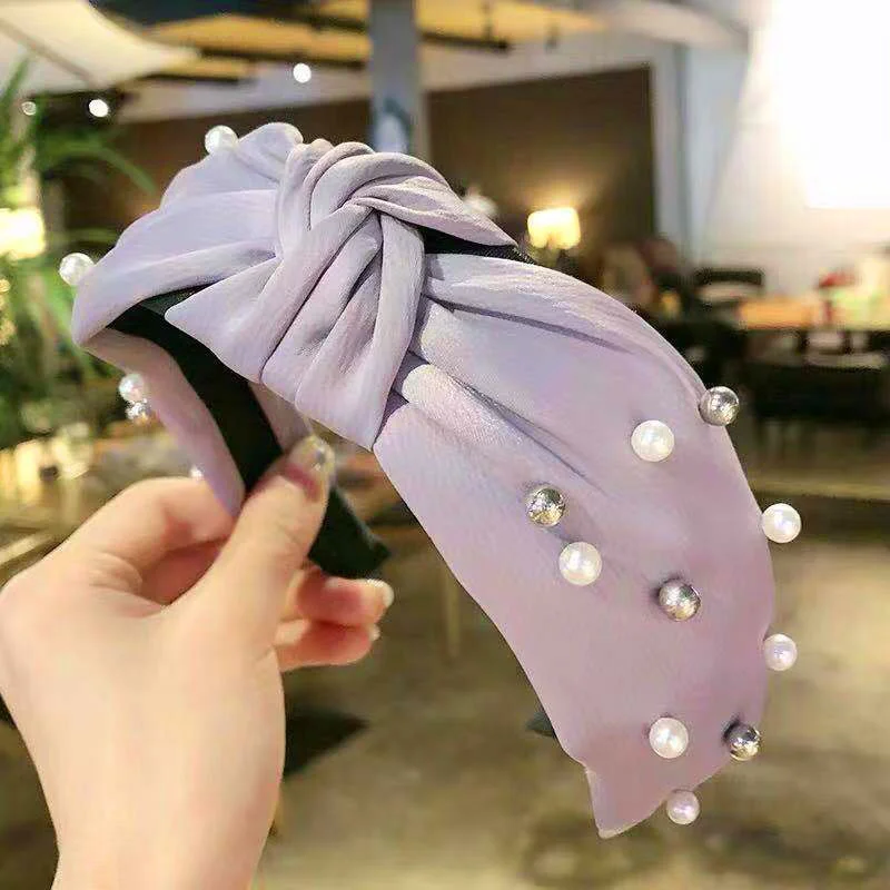 Обруч для волос Женский, широкий, из атласной ткани, с имитацией жемчуга, в Корейском стиле, 11 видов стилей, 2020