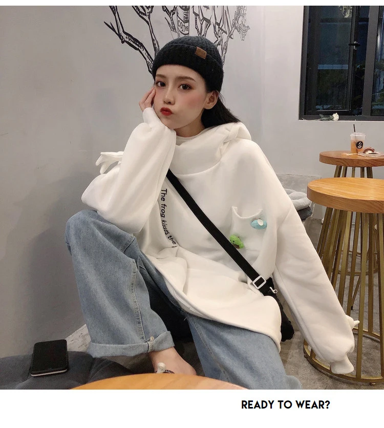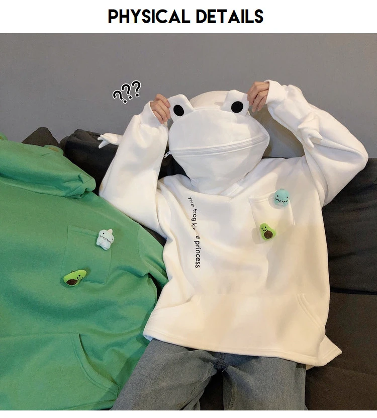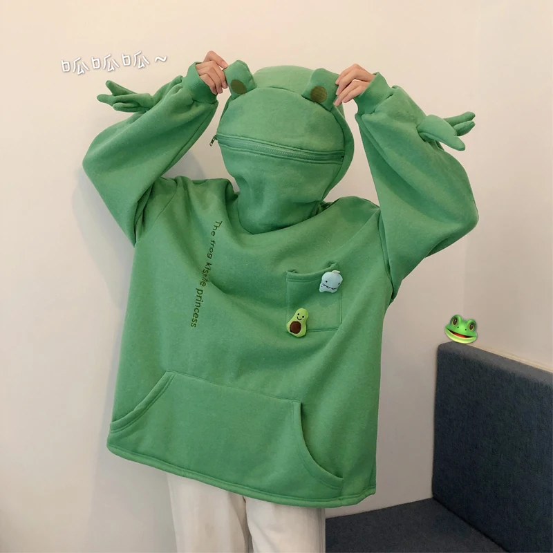 Толстовка для мужчин и женщин с принтом лягушки, милый пуловер в стиле Харадзюку, свободная повседневная Дизайнерская куртка с капюшоном, топ с декоративной 3D вышивкой, осень