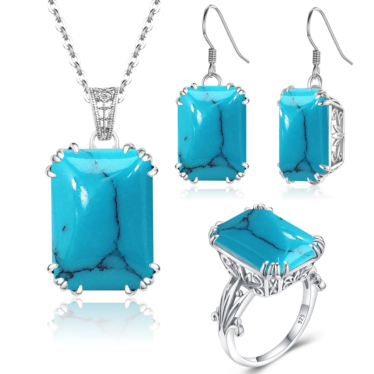 Спецификация: < 100% абсолютно новый и 925 пробы Серебряный из трех частей> Основной камень: бирюза Основной цвет камня: синий Стиль: милый Производство: ручная работа Металл: 925 пробы серебро Цвет изделия: античное серебро Размер изделия: как показано на картинке Особенности: высокое качество и абсолютно новый > Реальный объект более красивый < Посылка включает в себя: 1*1 пара сережек 1*1 шт кулон 1*1 шт кольцо Случайный выбор Красивая Подарочная коробка (безопасная упаковка доставка) Примечание: (Мы отправим товар в течение 48 часов после получения платежа)