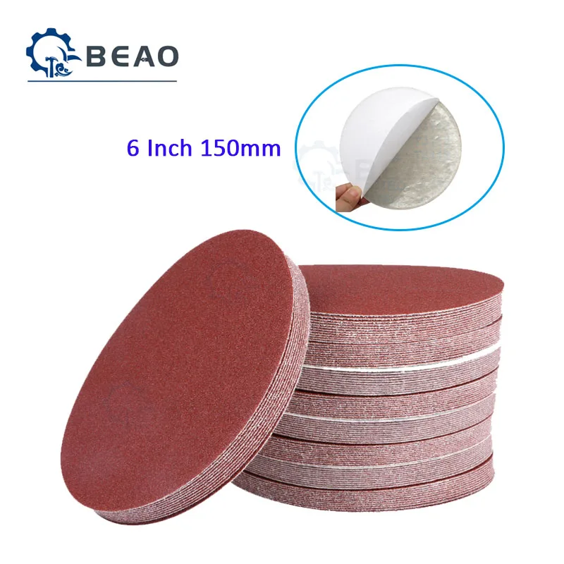 5-20 шт 6 дюймов 150 мм круглая красная шлифовальная бумага клеевая подложка диск сухой песок листы зернистости 60 80 крюк и петля шлифовальный диск