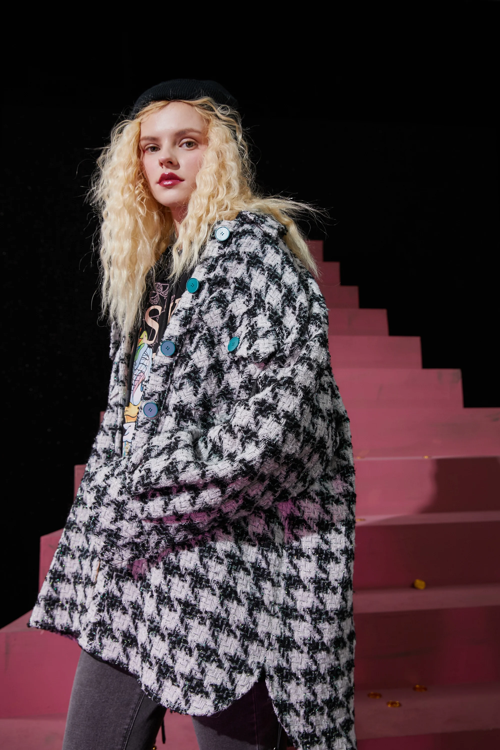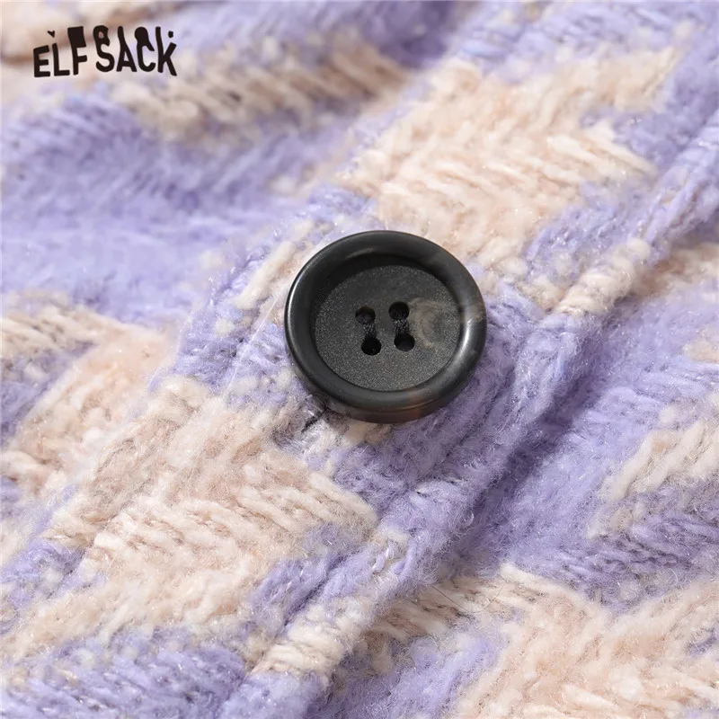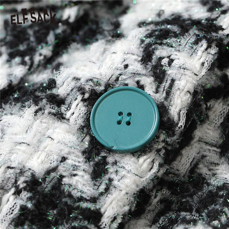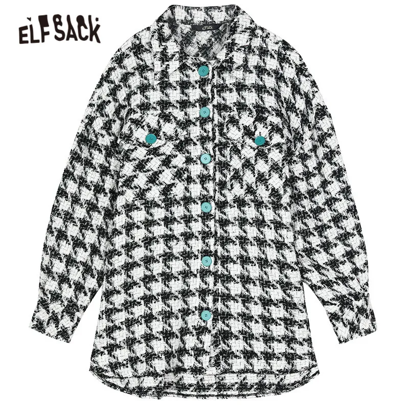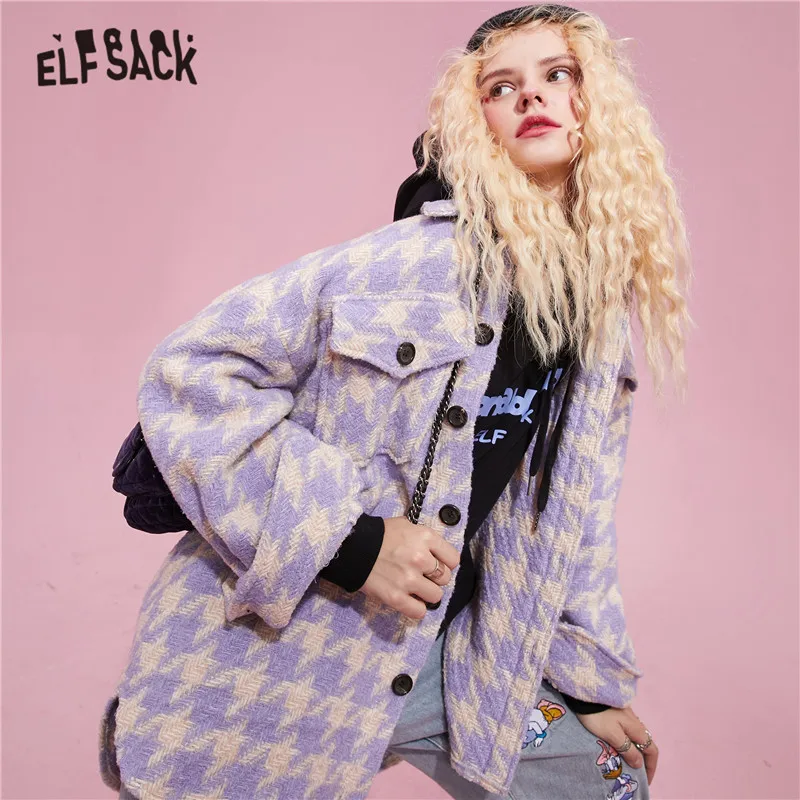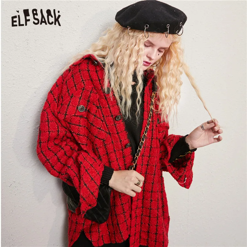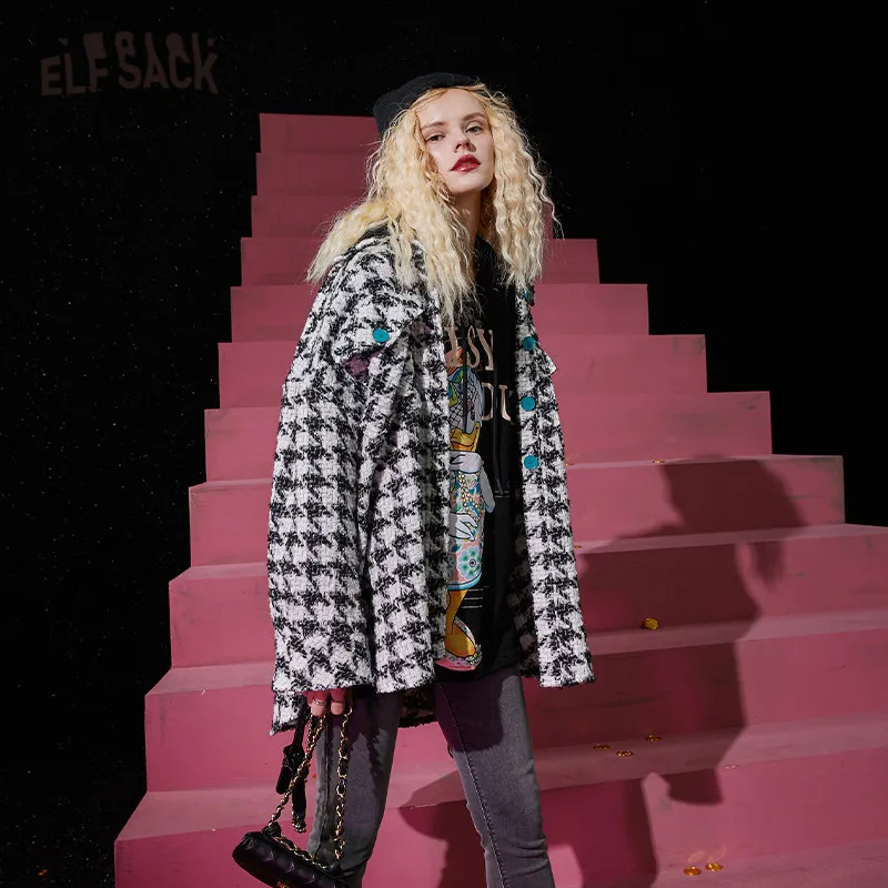 Женское твидовое пальто ELFSACK, шикарная на пуговицах, прямое шерстяное пальто в винтажном стиле в стиле оверсайз в Корейском стиле для зимы, 2020