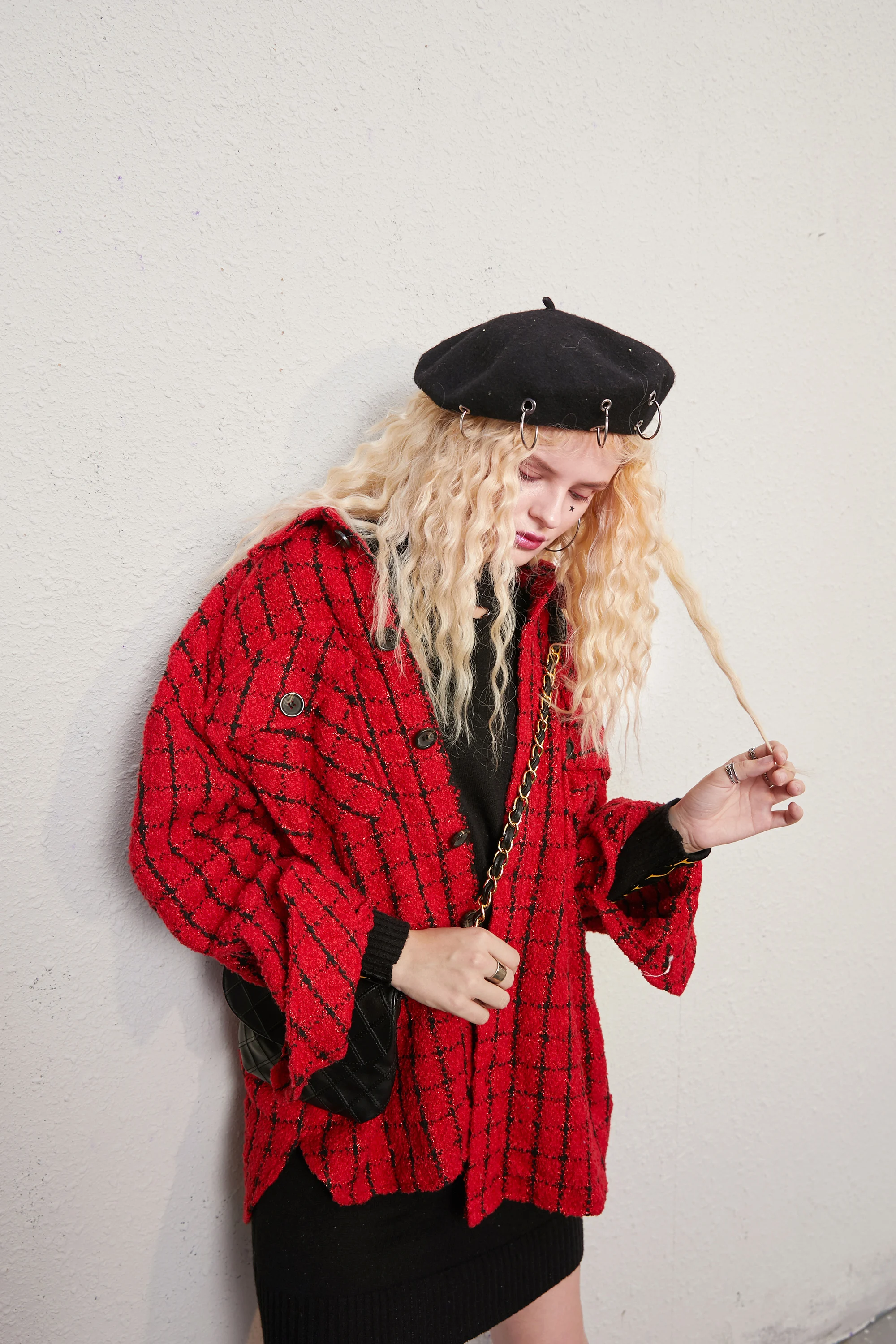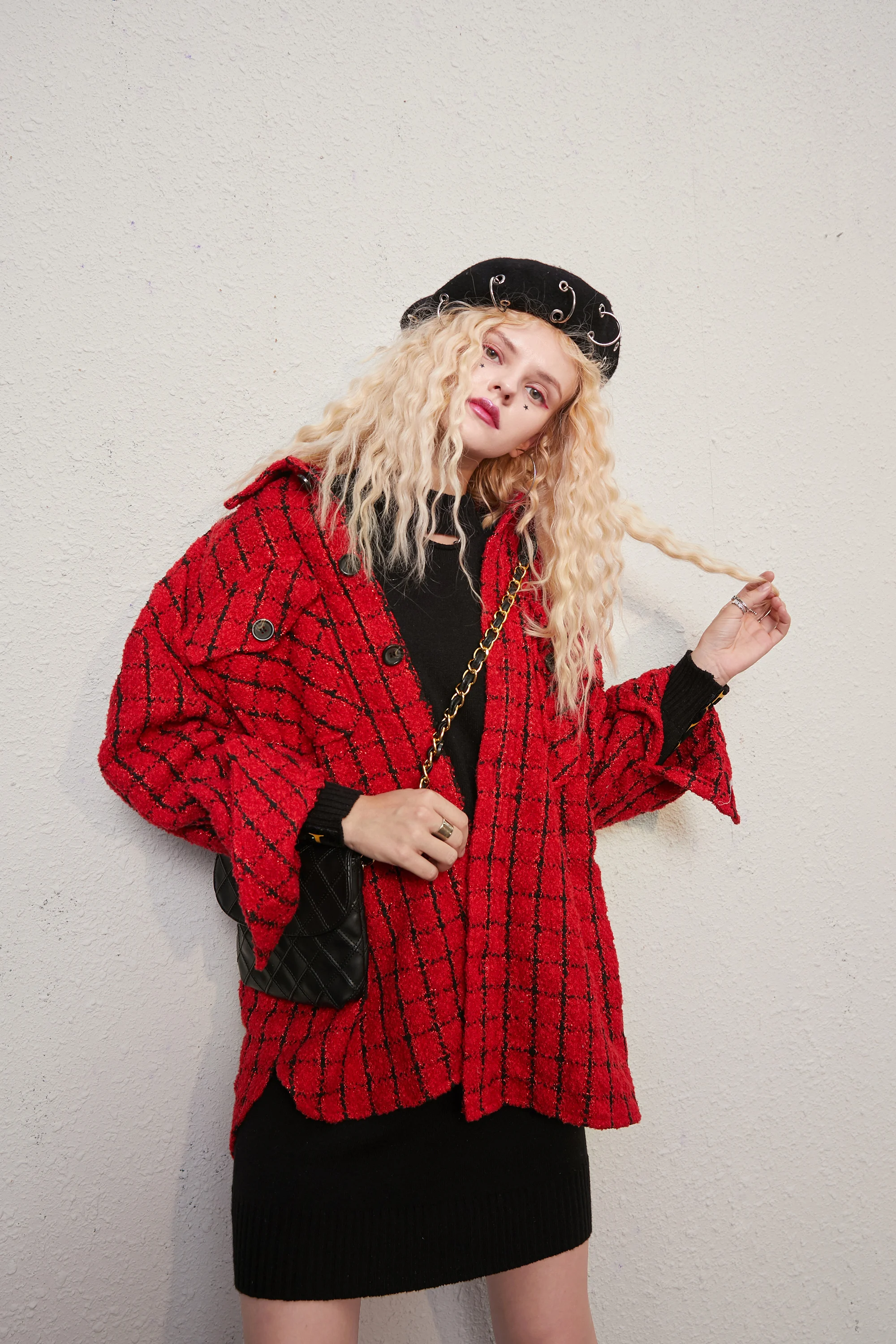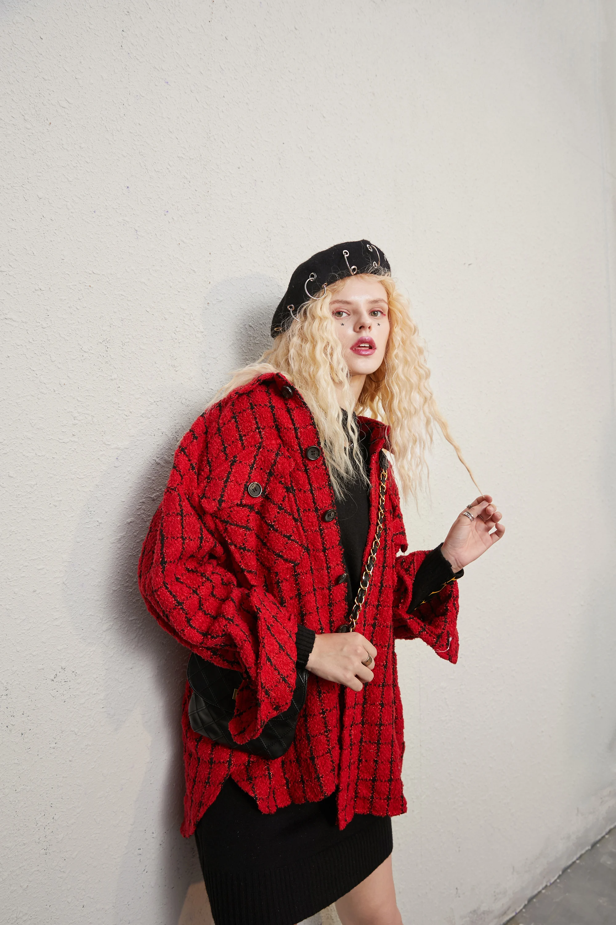 Женское твидовое пальто ELFSACK, шикарная на пуговицах, прямое шерстяное пальто в винтажном стиле в стиле оверсайз в Корейском стиле для зимы, 2020