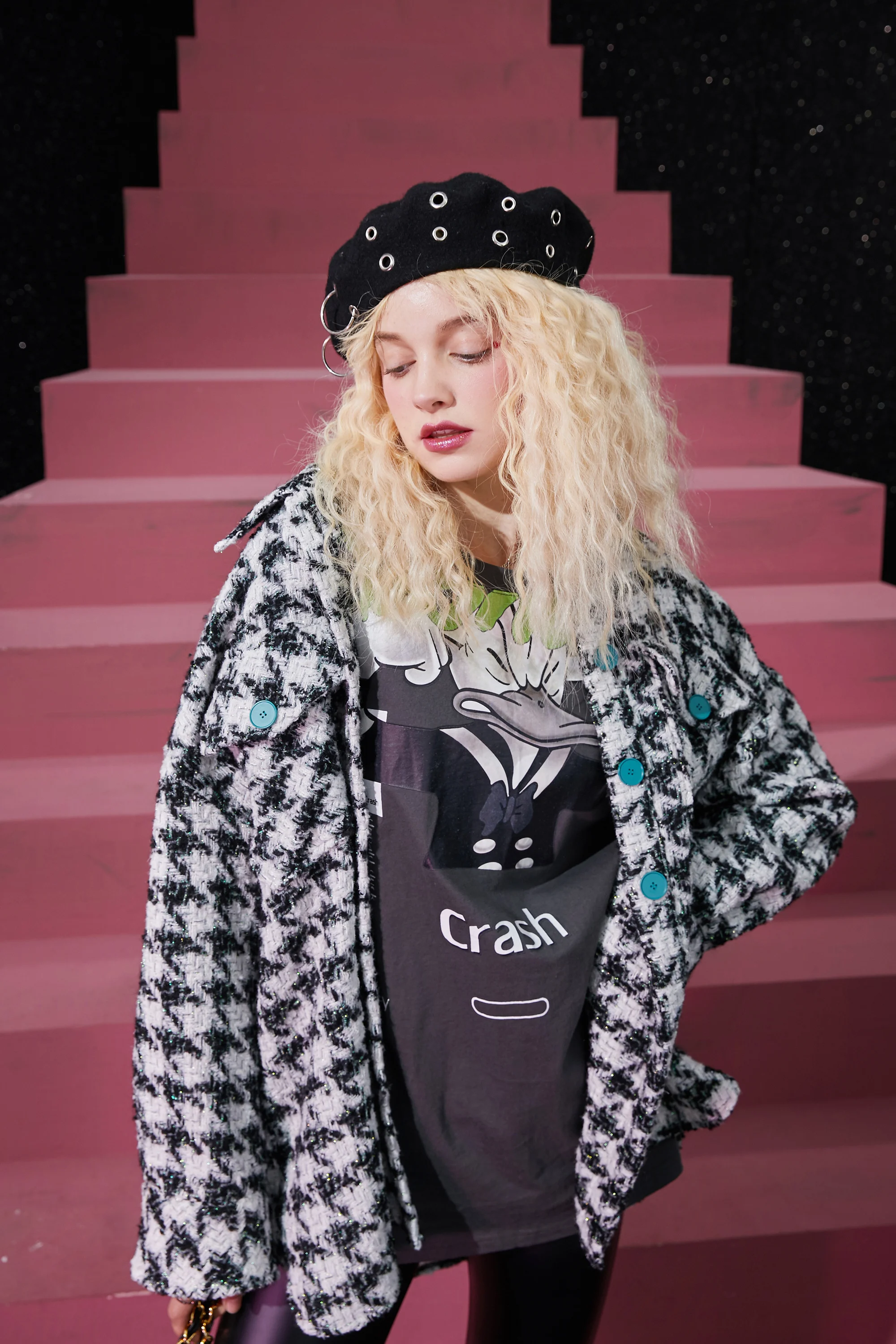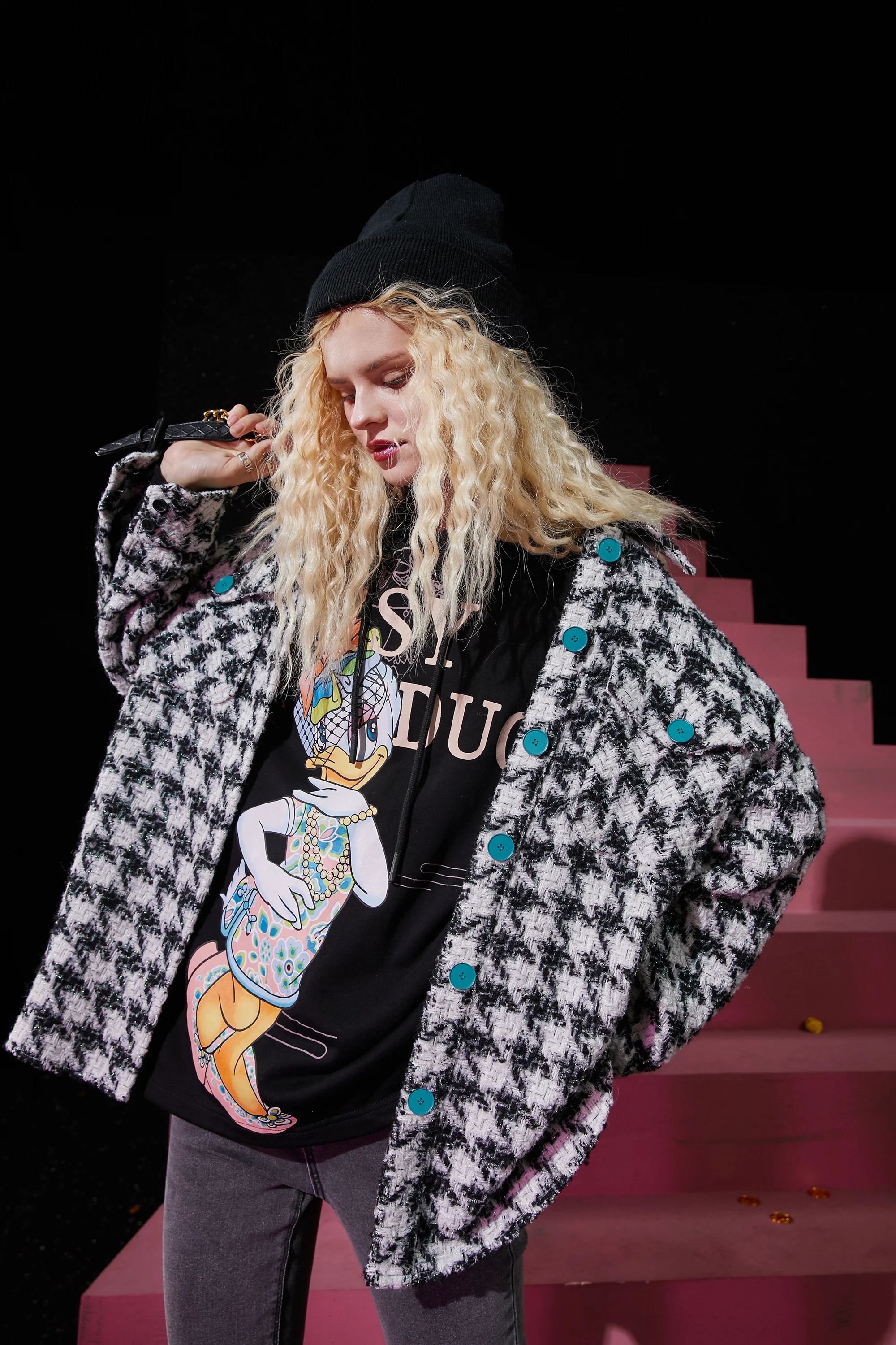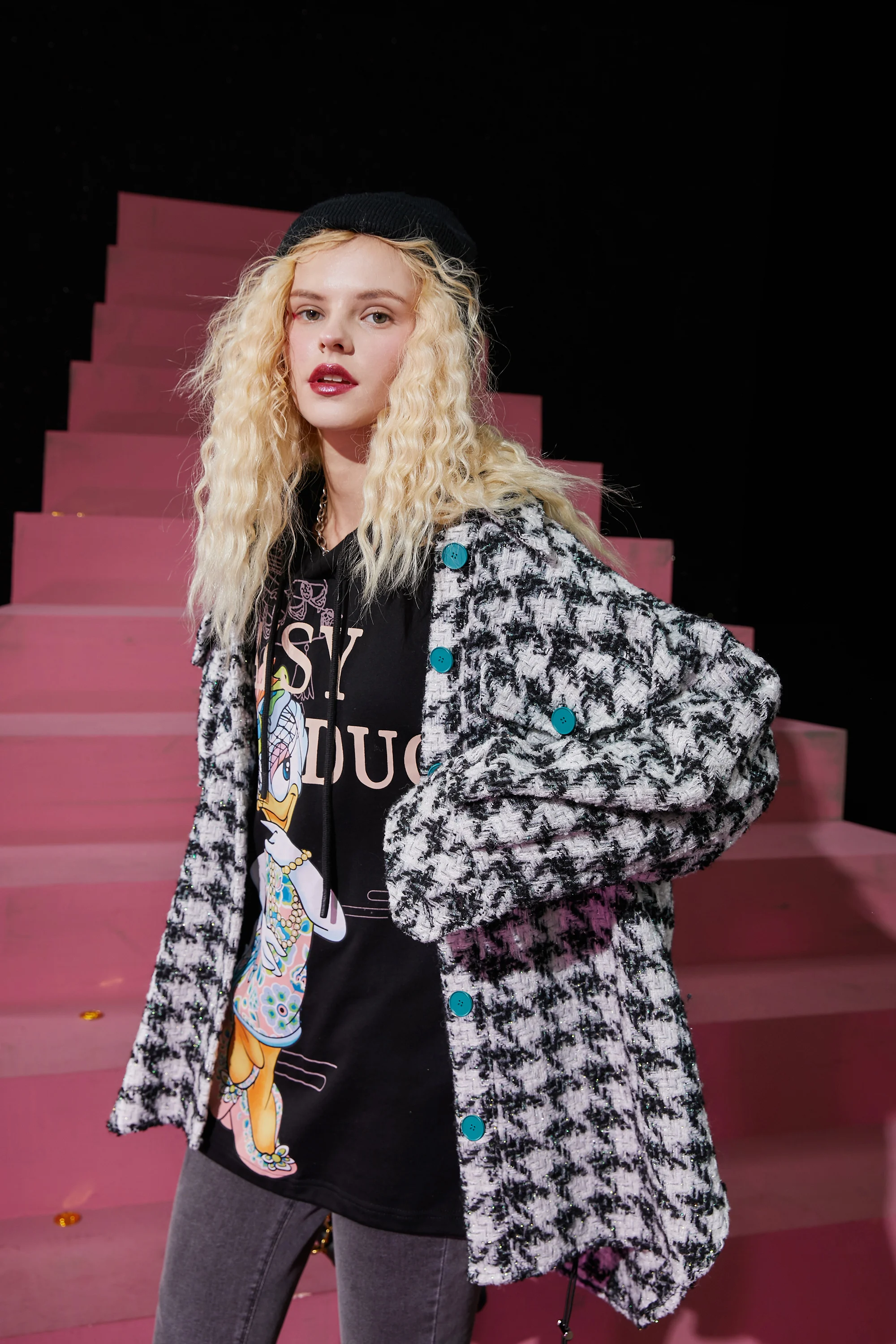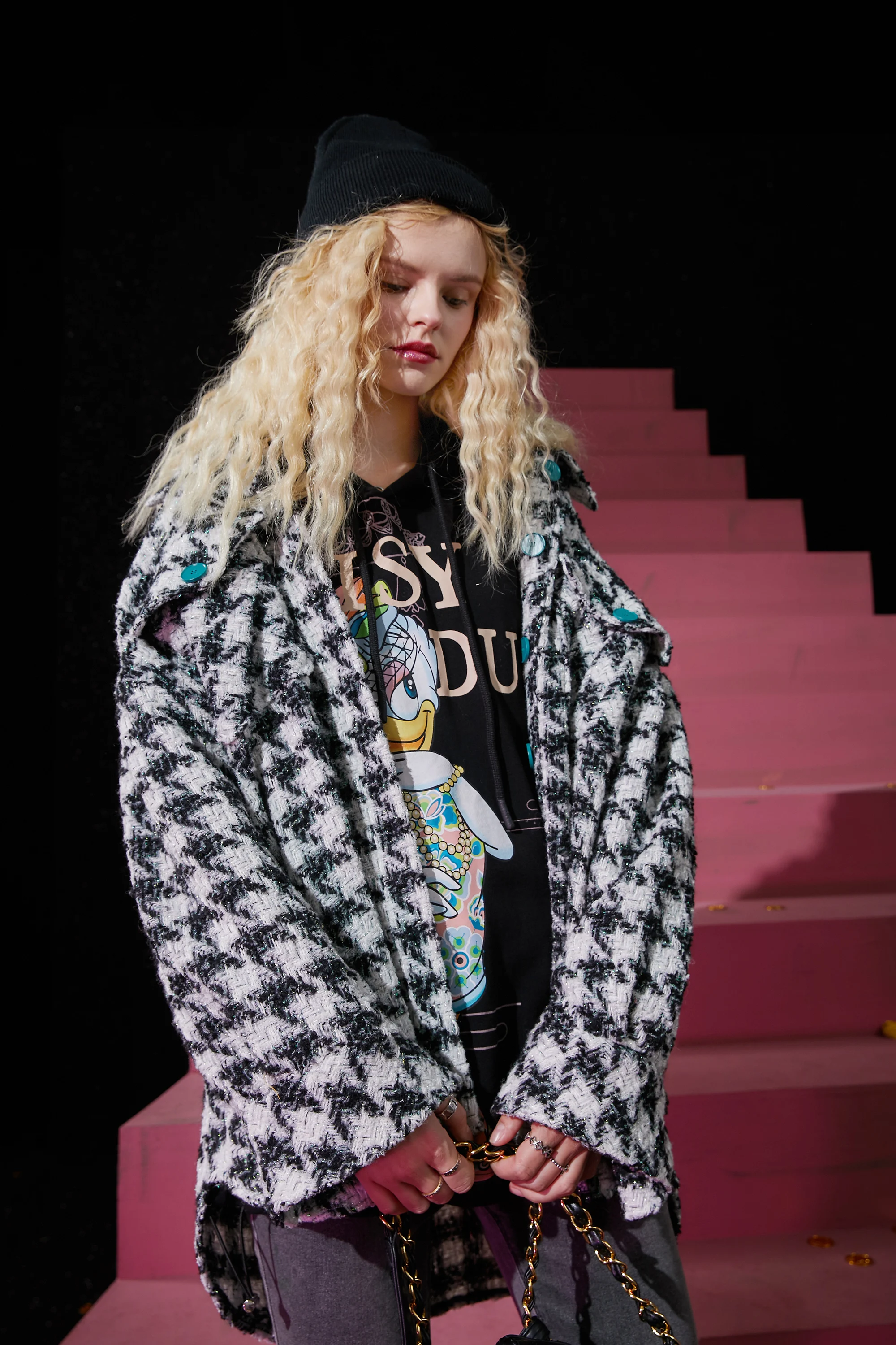 Женское твидовое пальто ELFSACK, шикарная на пуговицах, прямое шерстяное пальто в винтажном стиле в стиле оверсайз в Корейском стиле для зимы, 2020