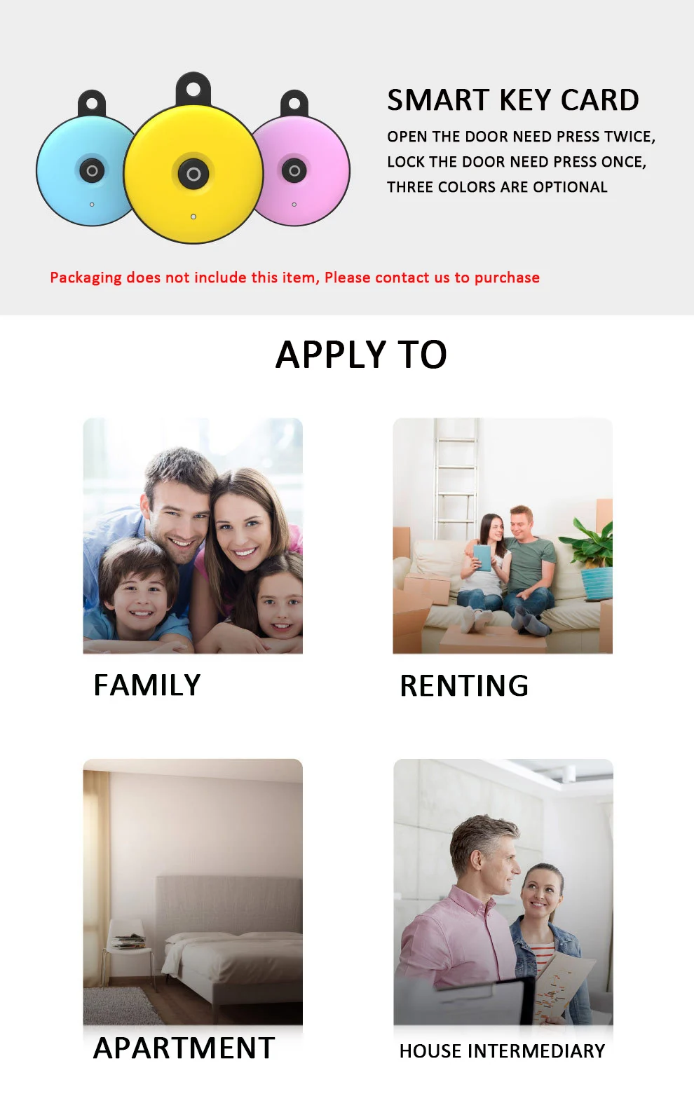 7. Смарт-ключи-карта переключает замок удаленно (в комплект не входит карта ключей), крошечная и модная, легко брать с собой. Нажмите кнопку дважды, чтобы разблокировать, нажмите один раз для блокировки. Это не нужно контролировать. Очень внимательно относится к пожилым и детям.