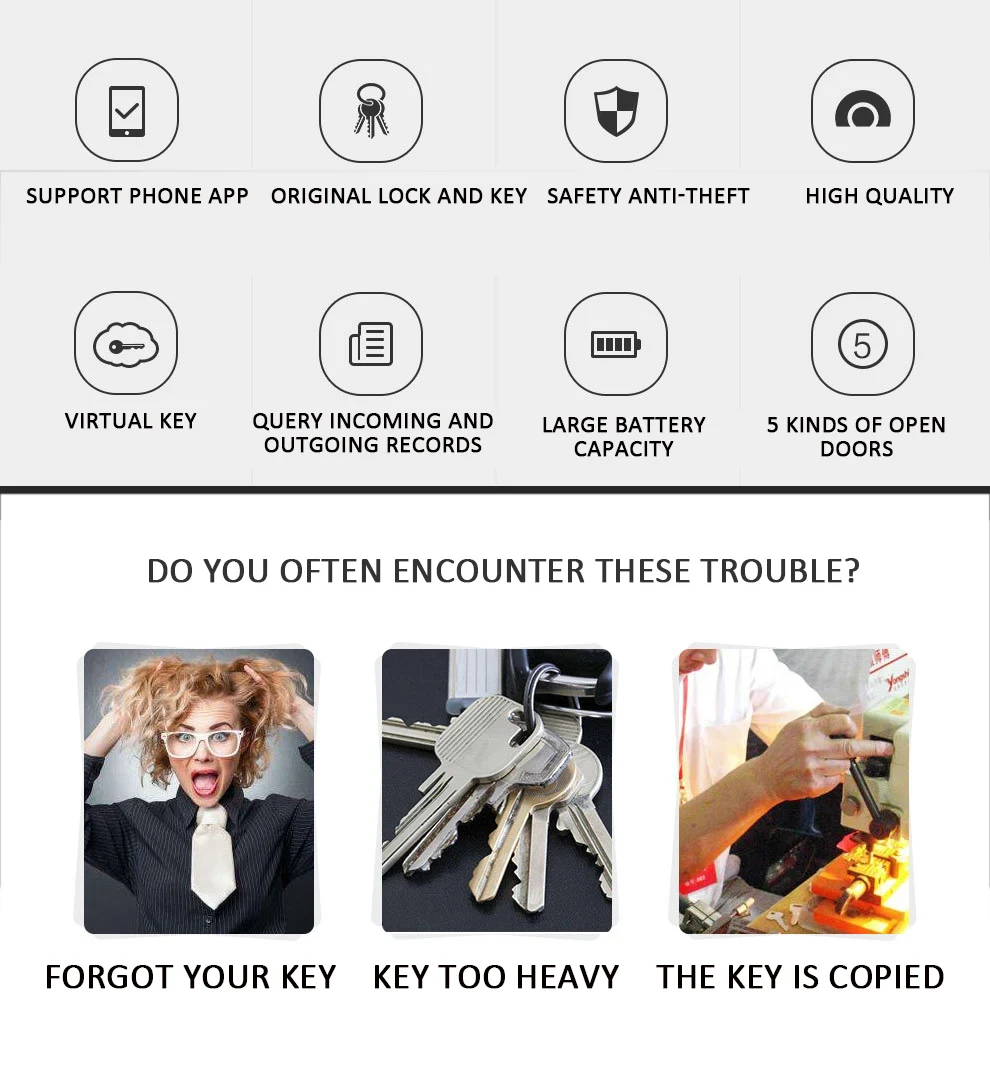 2. Установка в помещении мгновенно становится интеллектуальной, вам не нужно менять оригинальный замок, его легко установить с помощью технической резиновой ленты класса 3M, которая является термостойкой и твердой.