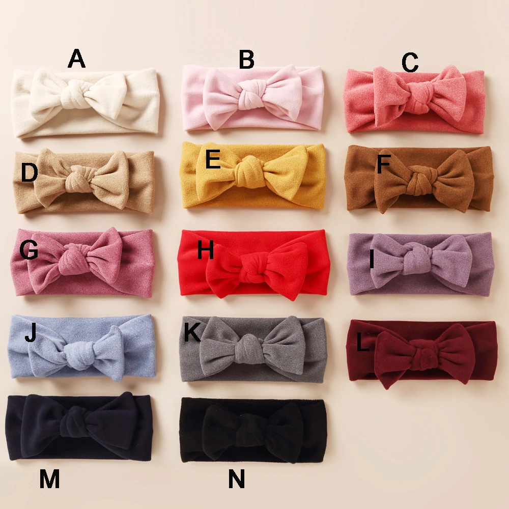 Kid nylon elastic headbandGirls baby solid cotton fabric bow headband