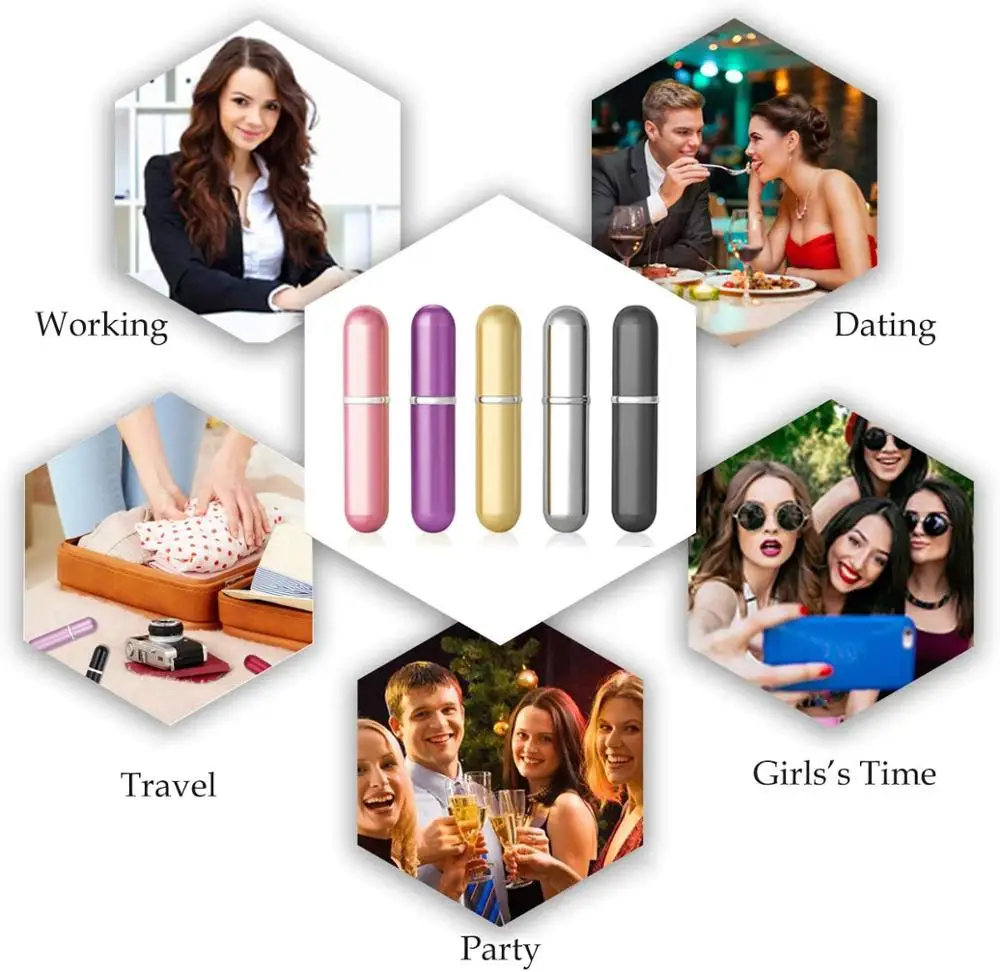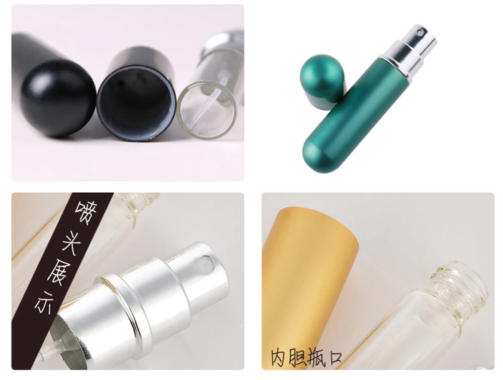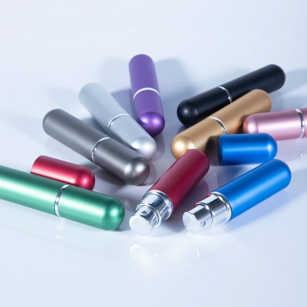 Многоразовый мини-флакон для духов, 5 мл, Алюминиевый распылитель, портативный дорожный косметический контейнер распылитель с насосом