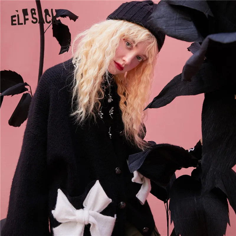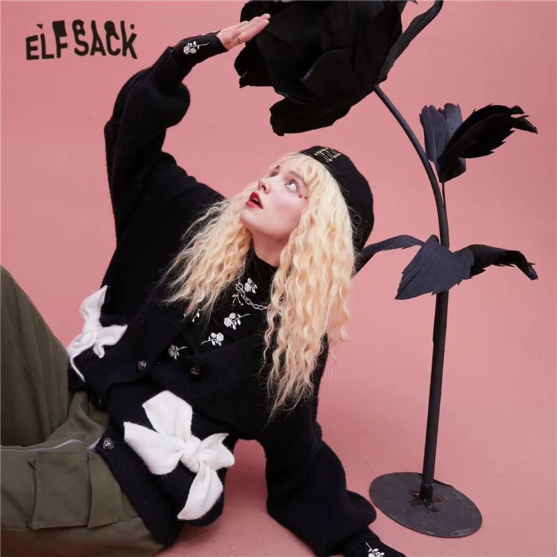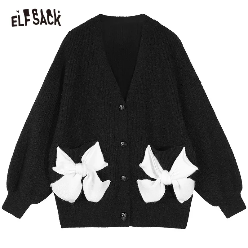 Женский кардиган ELFSACK, однотонная, шикарная на пуговицах, вязаный, Повседневный, зимний, винтажный, с длинным рукавом, в Корейском стиле, 2020