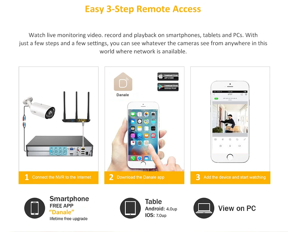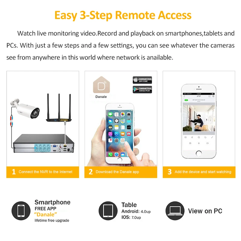 Настоящая система безопасности plug and play! Он оснащен PoE (Power over Ethernet), с одним кабелем, соединяющим каждую ip-камеру с NVR как для источника питания, так и для передачи видеосигнала. Простая Проводка-процесс проводки не может быть проще для любителей DIY и начинающих.