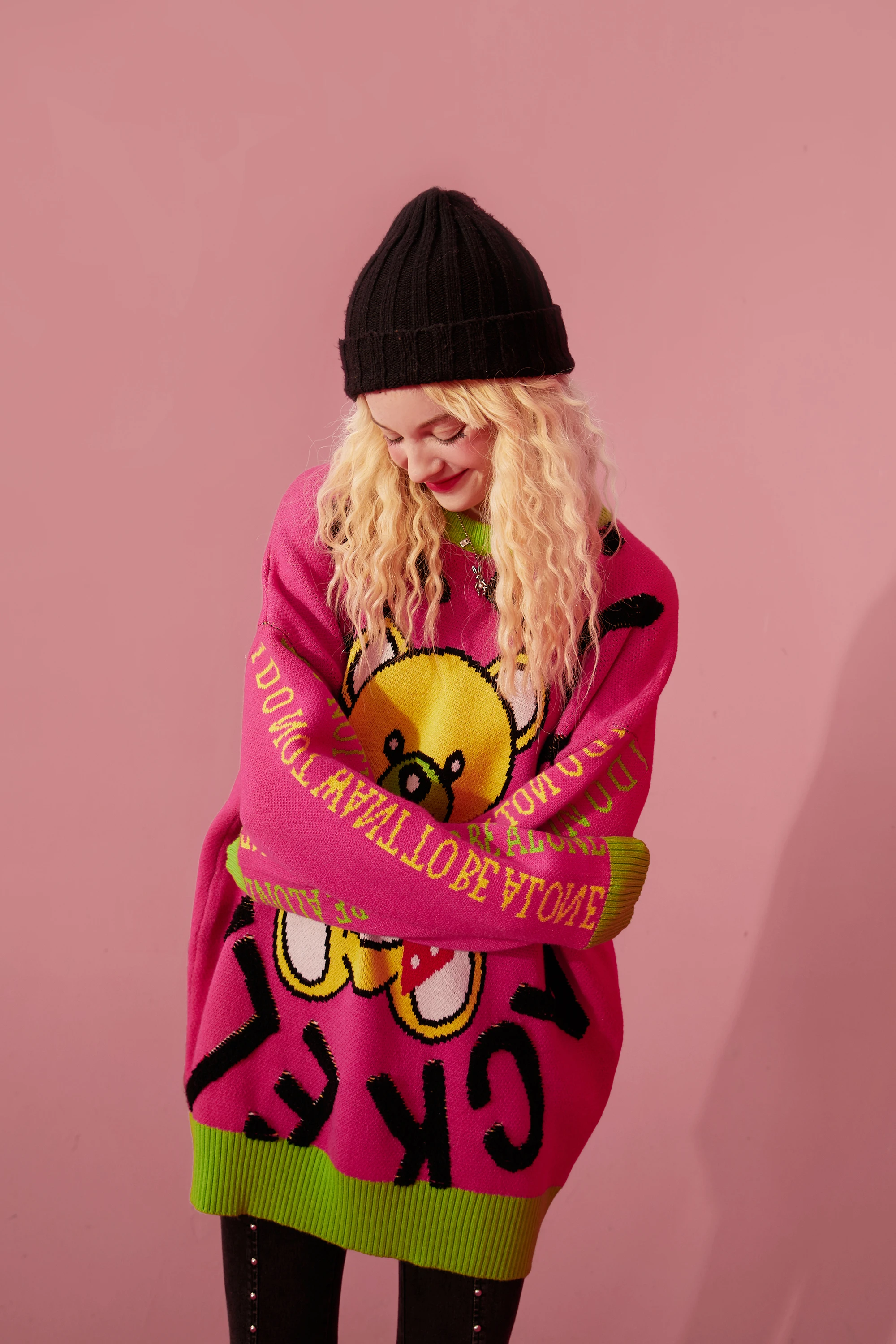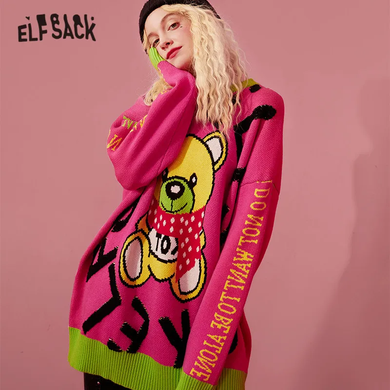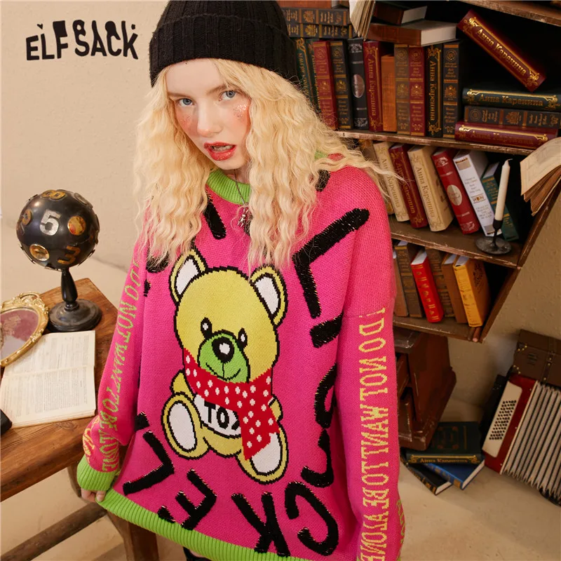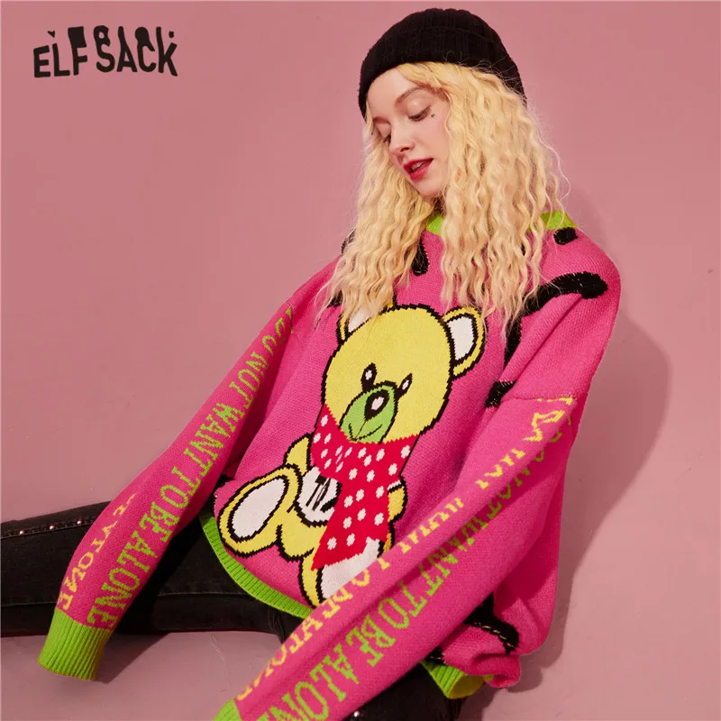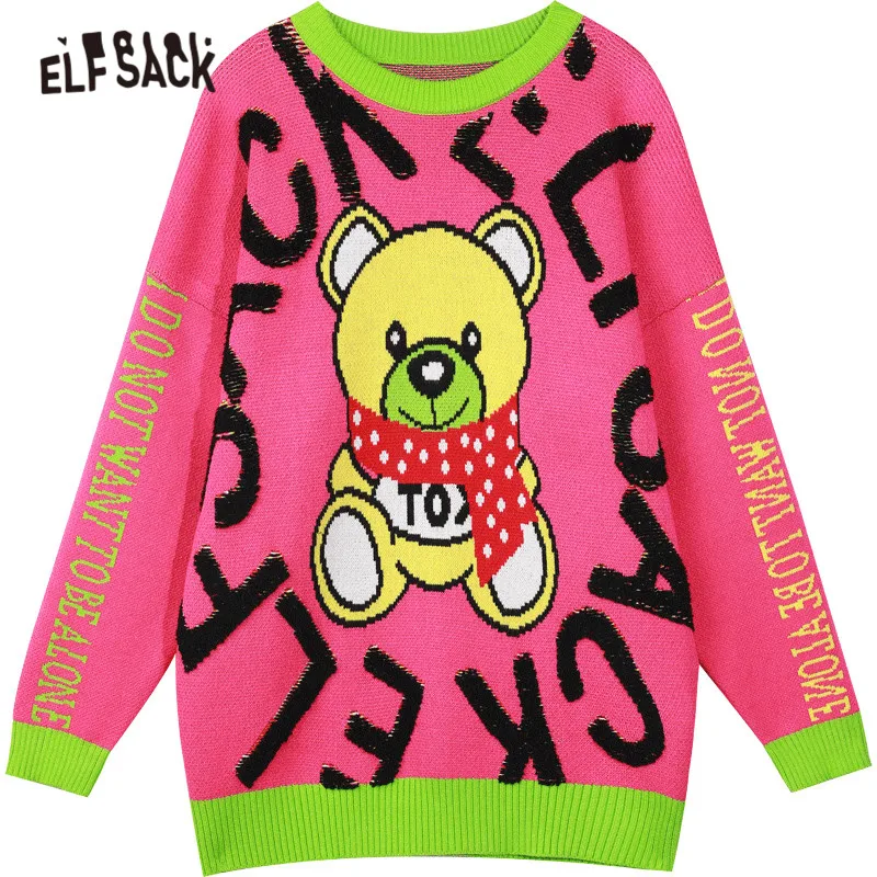 Женский трикотажный пуловер ELFSACK Harajuku, жаккардовый пуловер с длинными рукавами в Корейском стиле, зима 2020