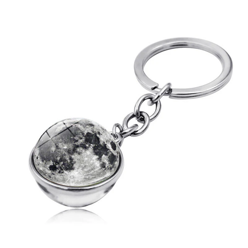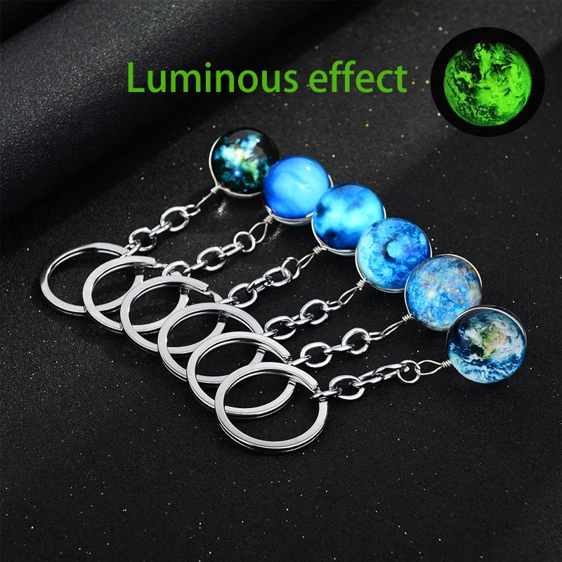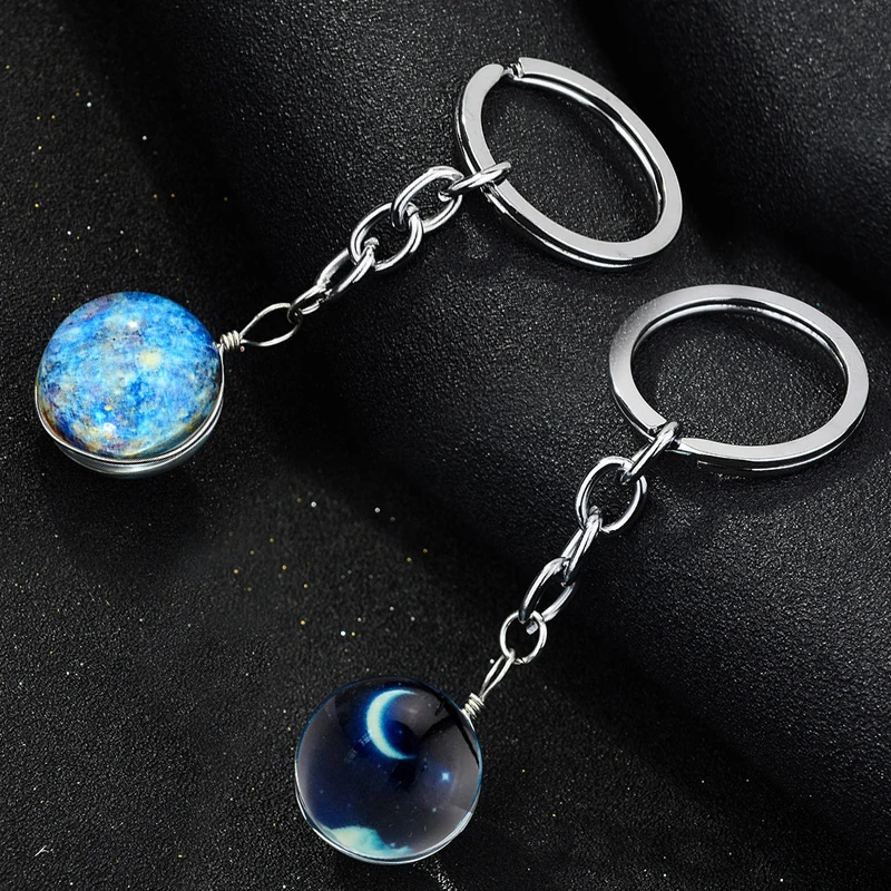 Брелок для ключей, аксессуар для ключей с изображением земли, космоса, галактики, Вселенной, Луны, звезды, стеклянный шар, планеты, солнечный мультяшный узор, ювелирный аксессуар