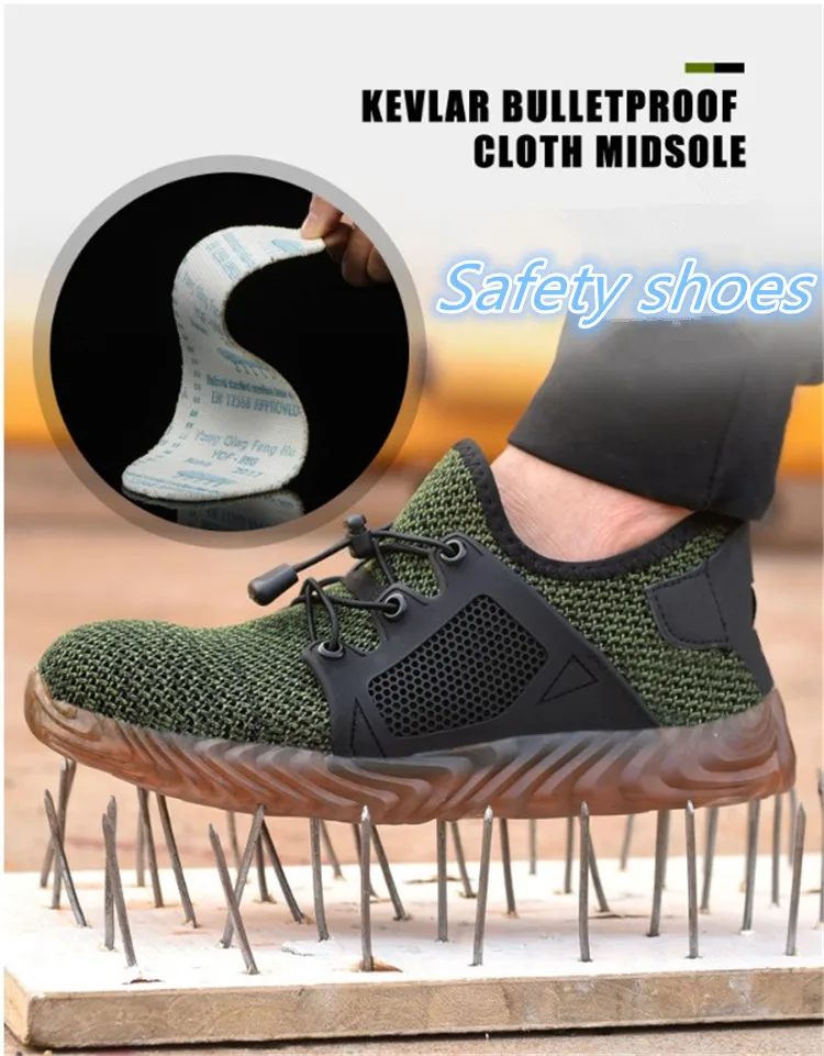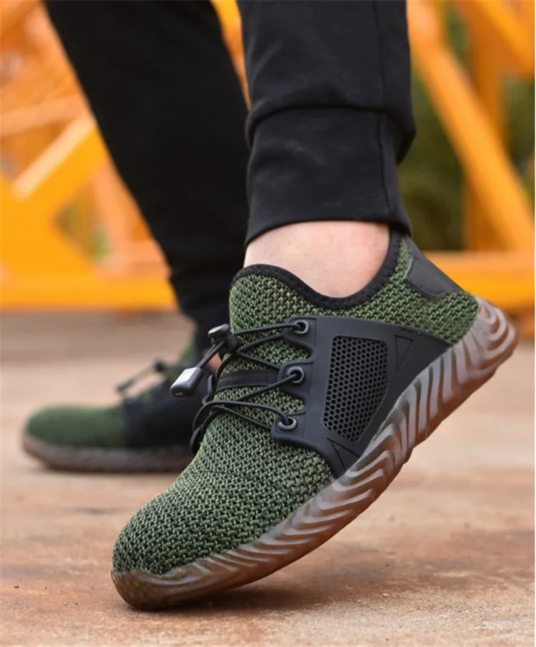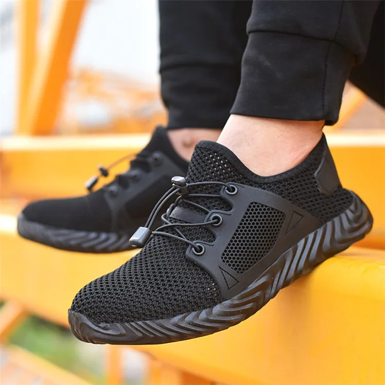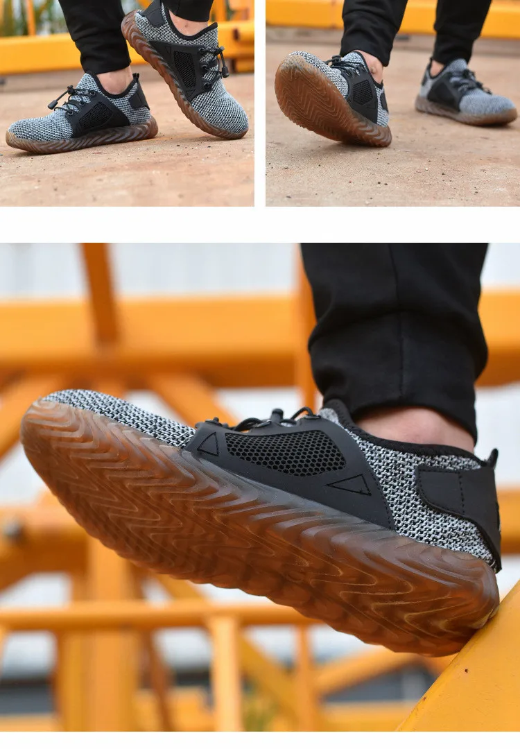Сетчатые дышащие мужские рабочие туфли, легкие, на мягкой подошве, со стальным носком, защита от ударов и проколов, без шнуровки